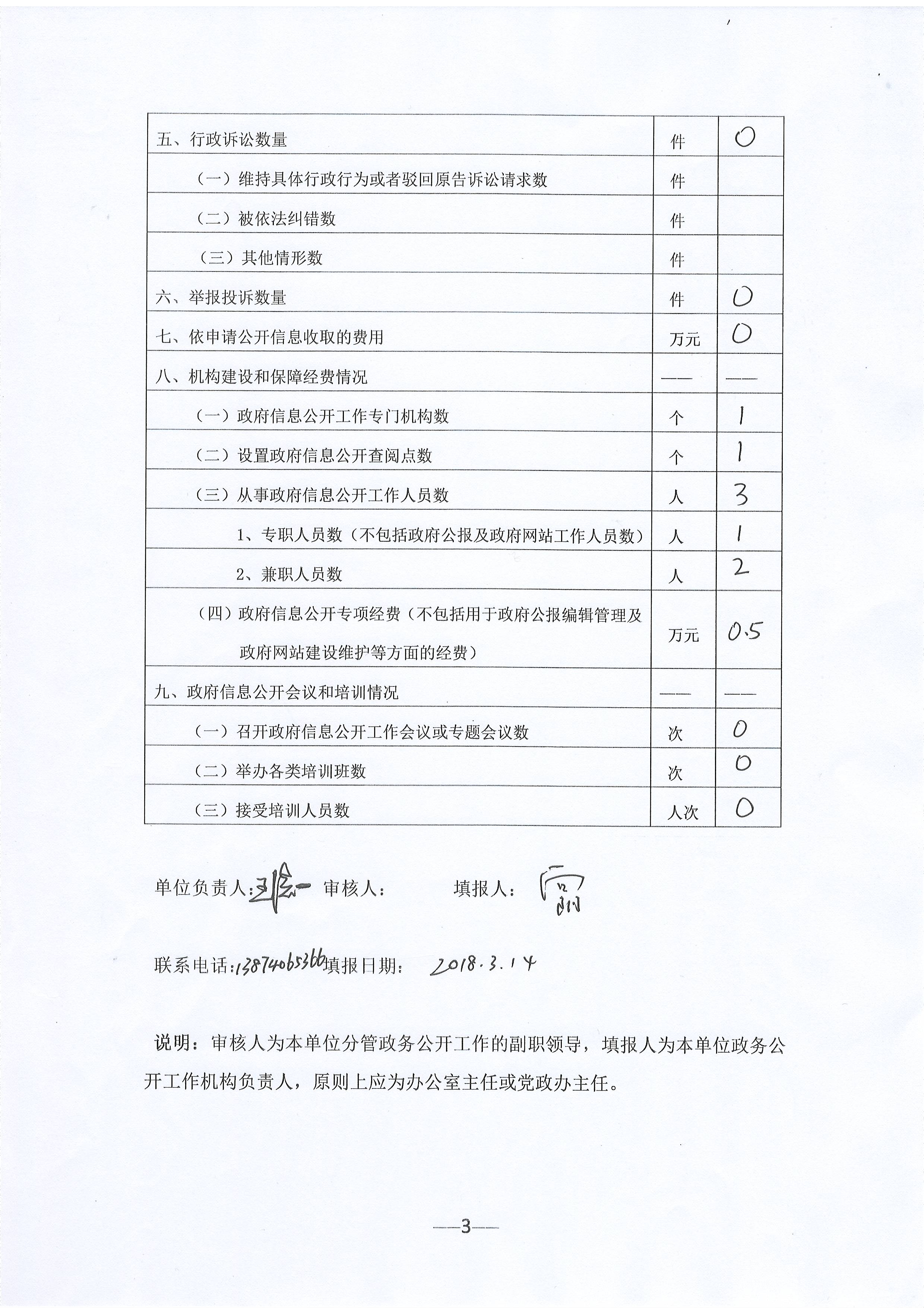 2017年度,县供销联社未发生针对本部门有关政府信息公开事务的行政复议案、行政诉讼案。
