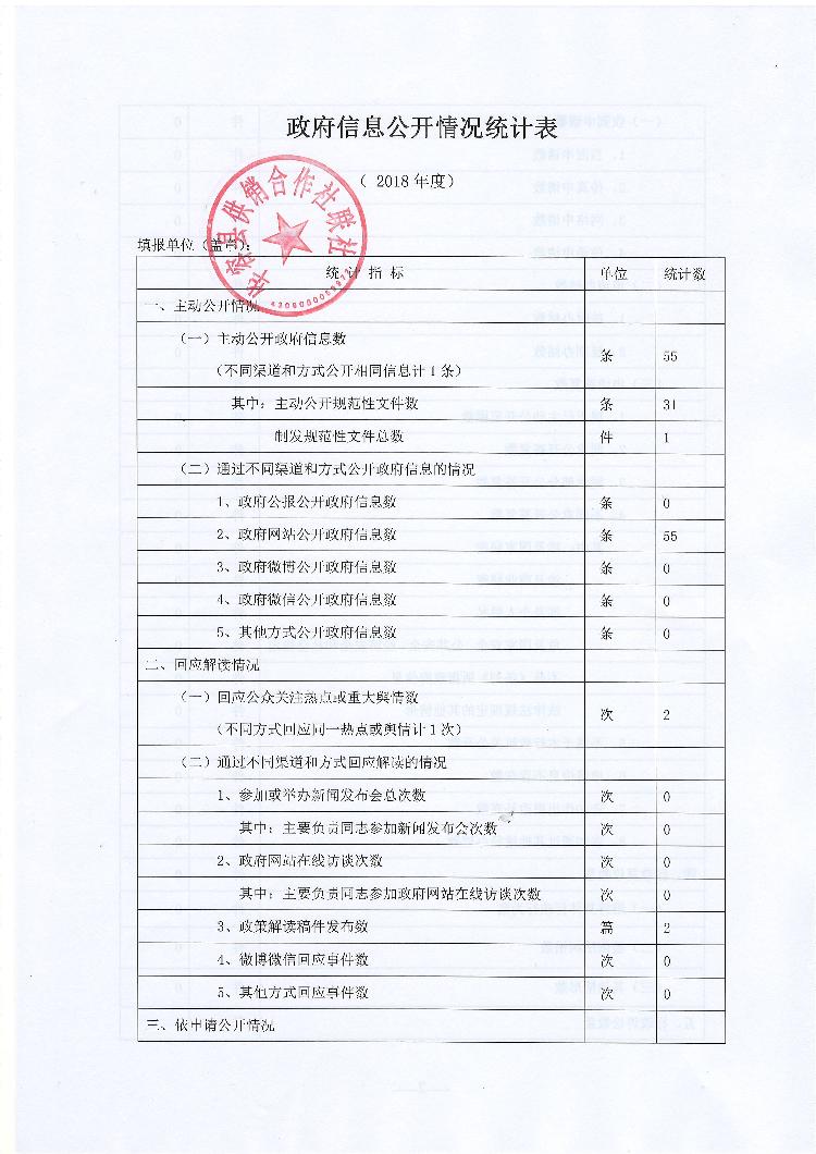2018年度,县供销联社未收到信息公开的申请。