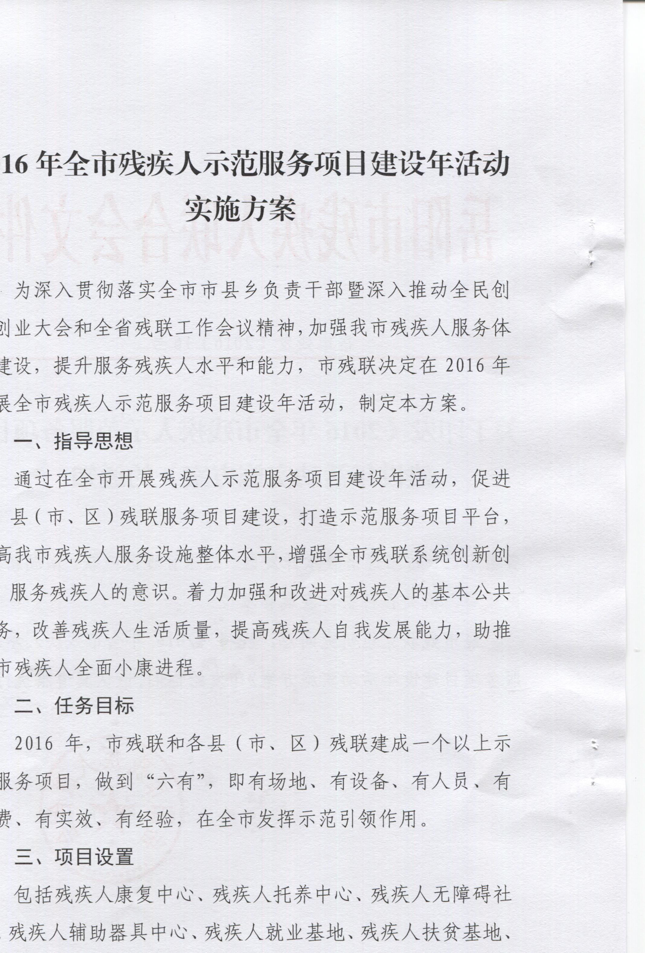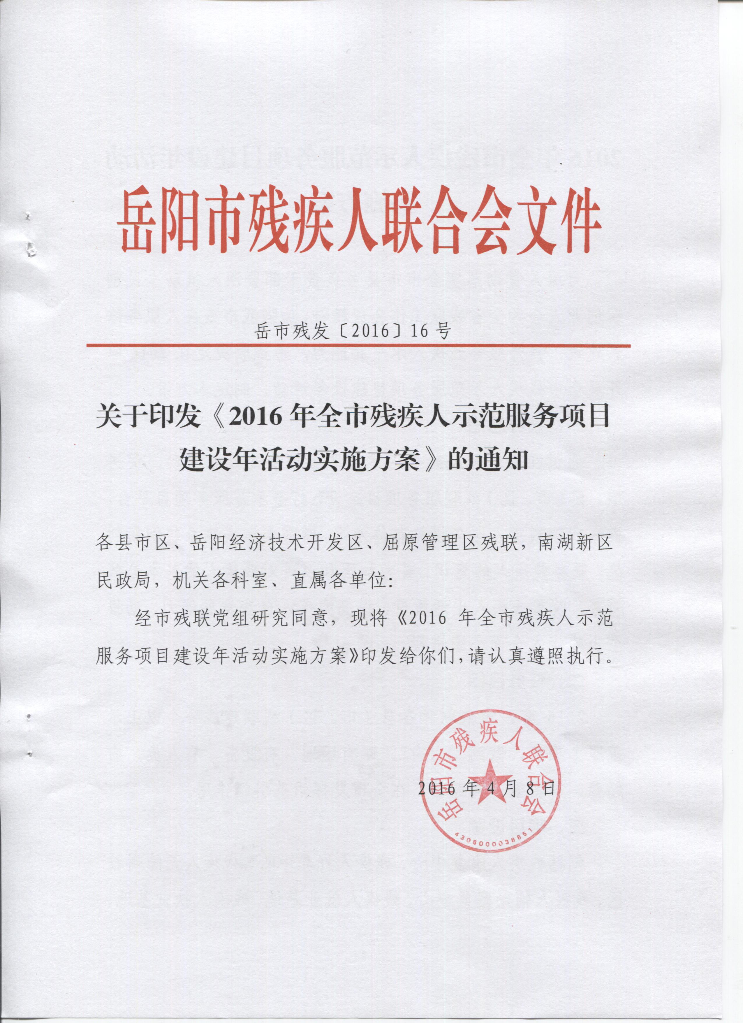 2016年岳阳市残疾人示范服务项目建设年实施方案