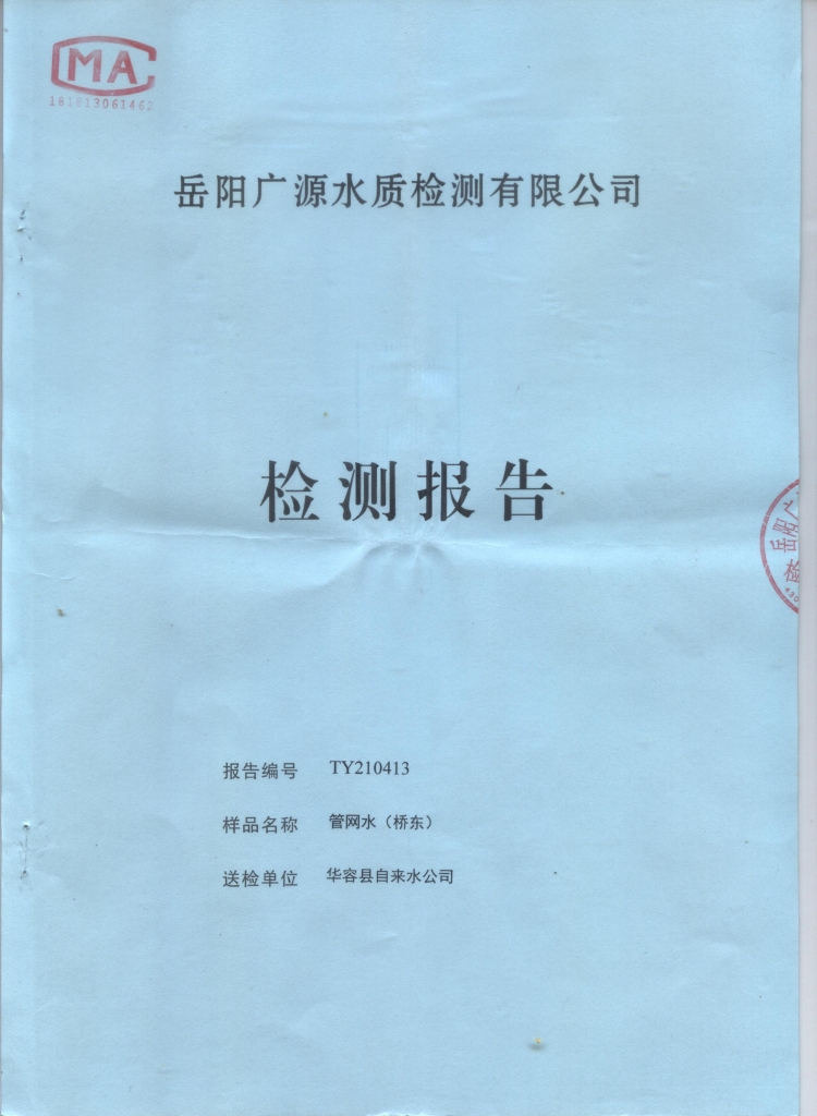 来源: 华容县自来水化验室