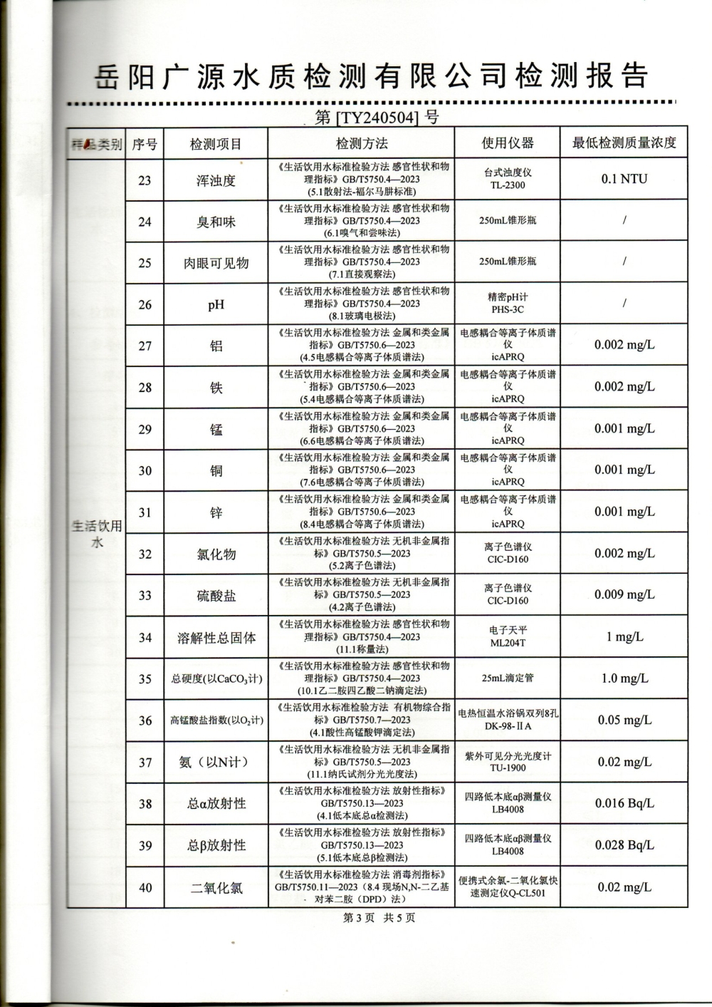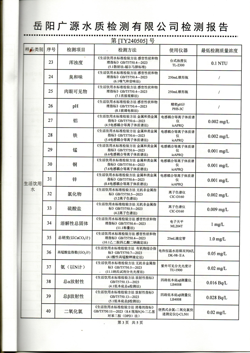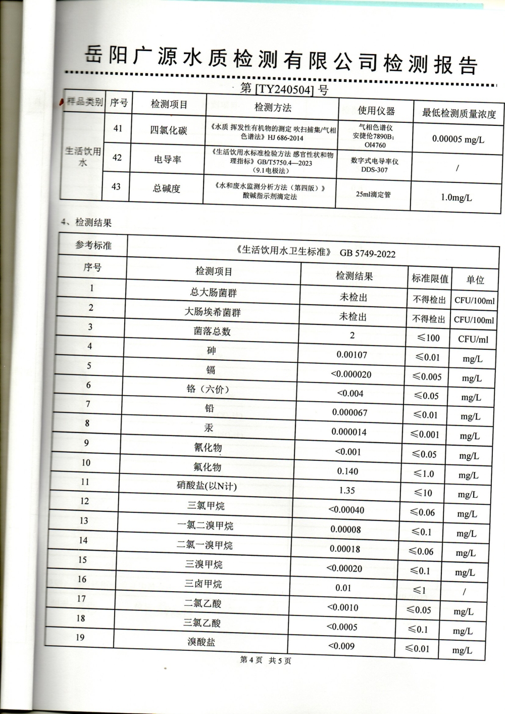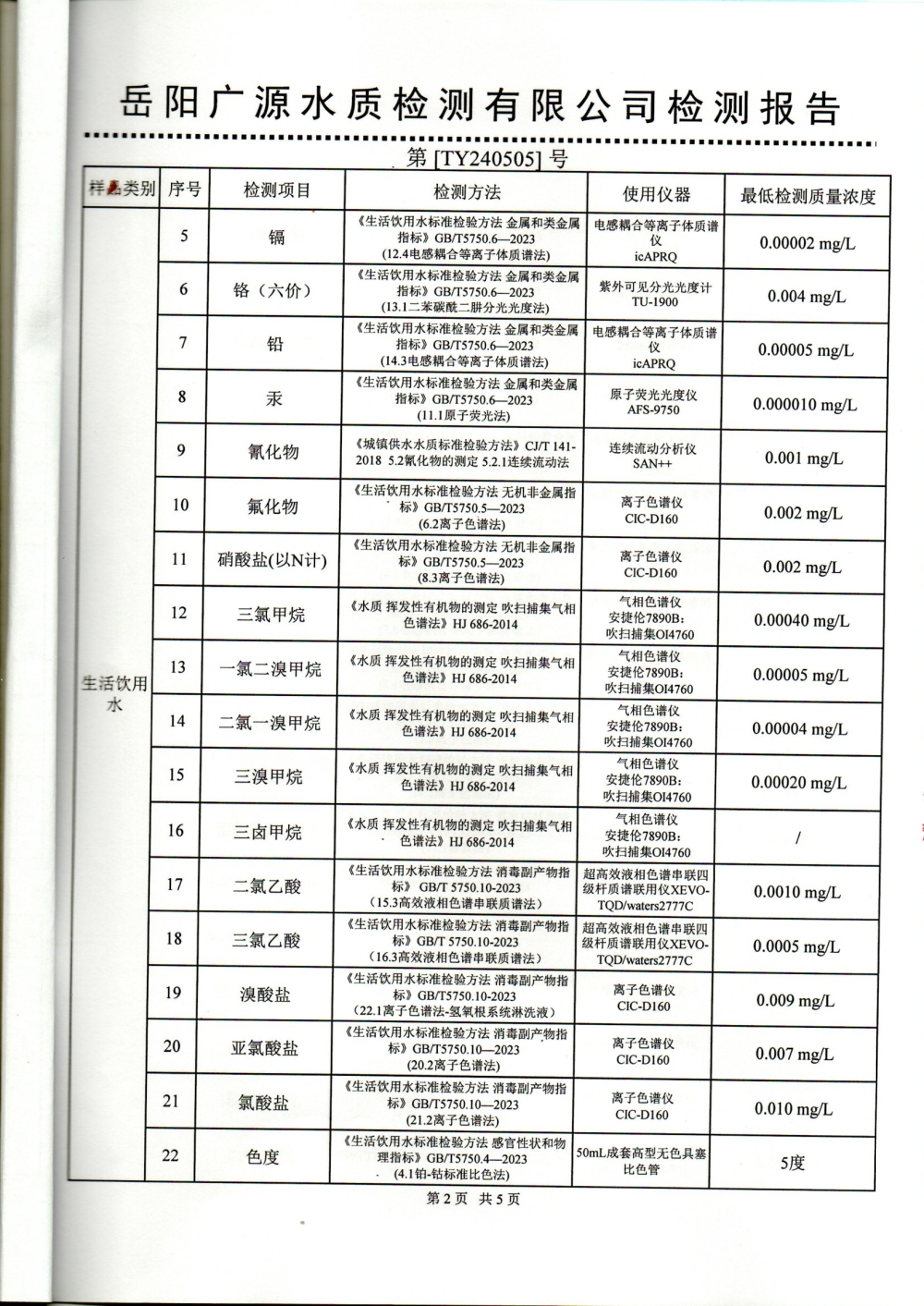 华容县自来水有限责任公司2024年5月水质信息公开