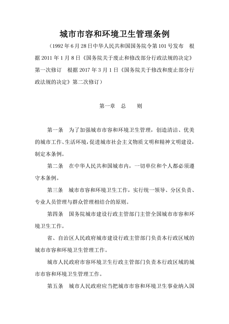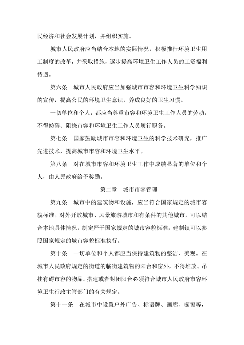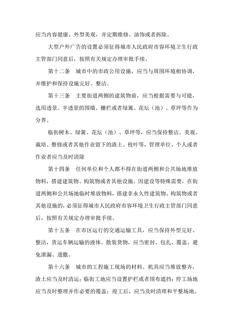 城市市容和环境卫生管理条例