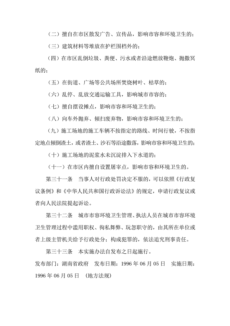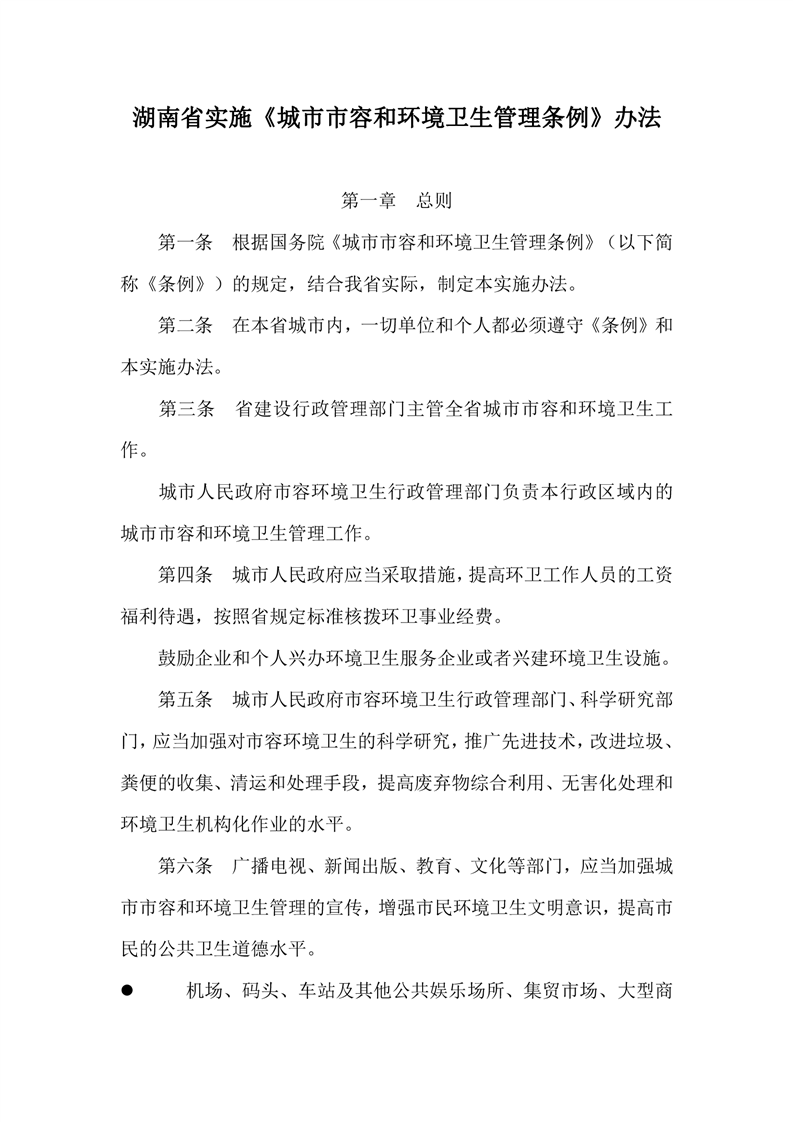 湖南省实施《城市市容和环境卫生管理条例》办法