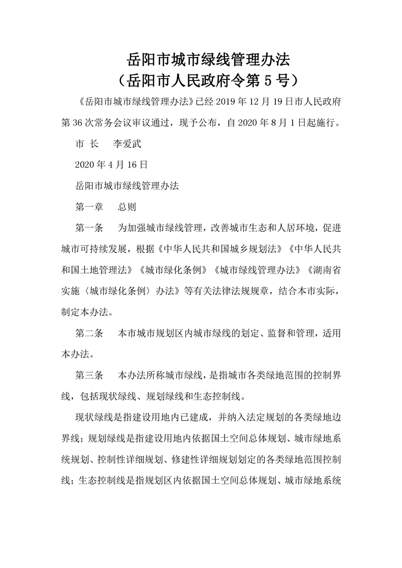 岳阳市城市绿线管理办法 (岳阳市人民政府令第5号)