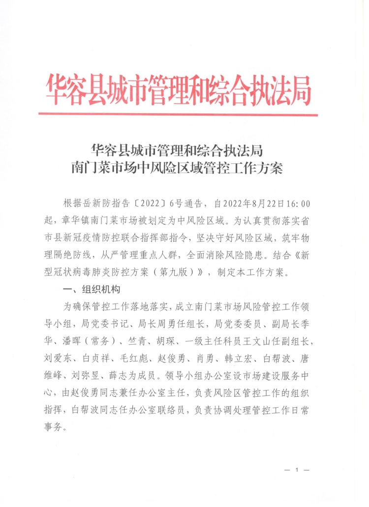 华容县城市管理和综合执法局南门菜市场中风险区域管控工作方案