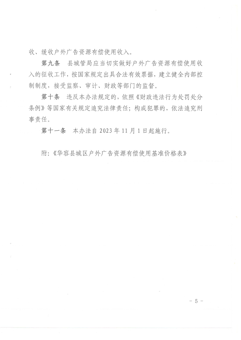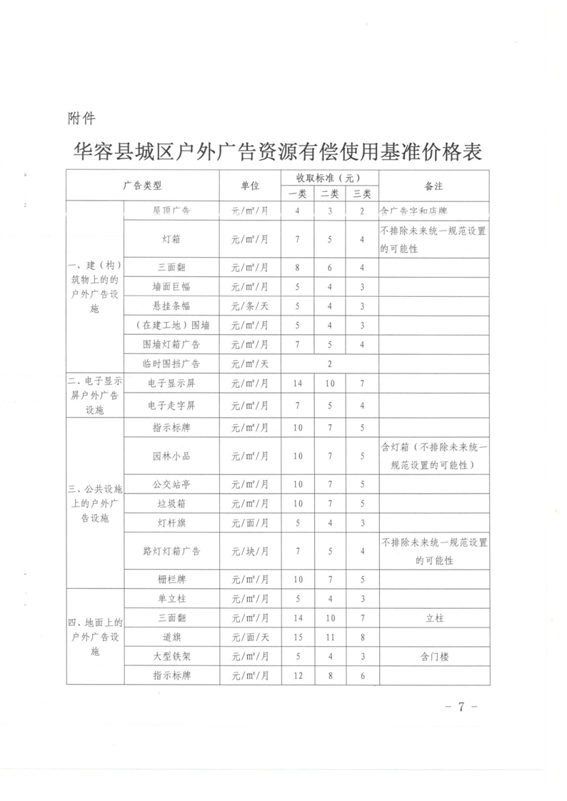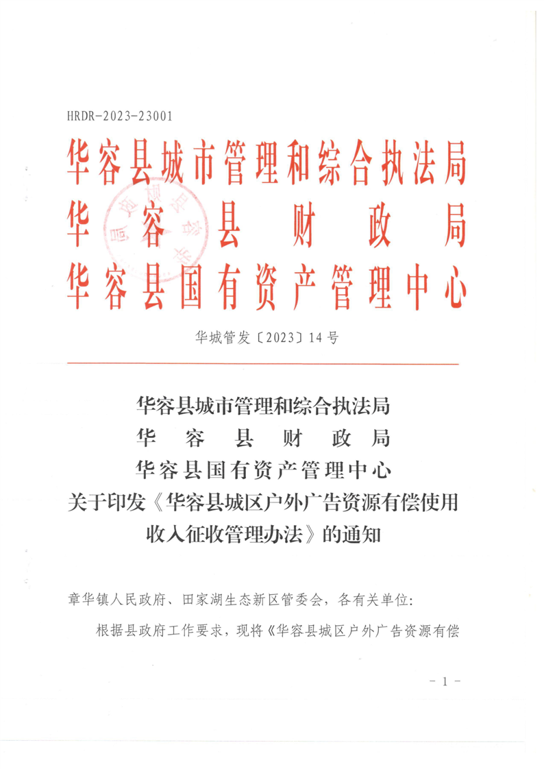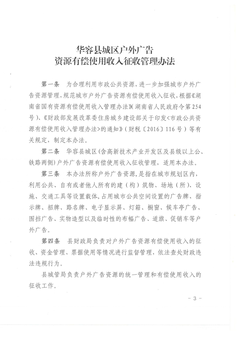 关于印发《华容县城区户外广告资源有偿使用收入征收管理办法》的通知