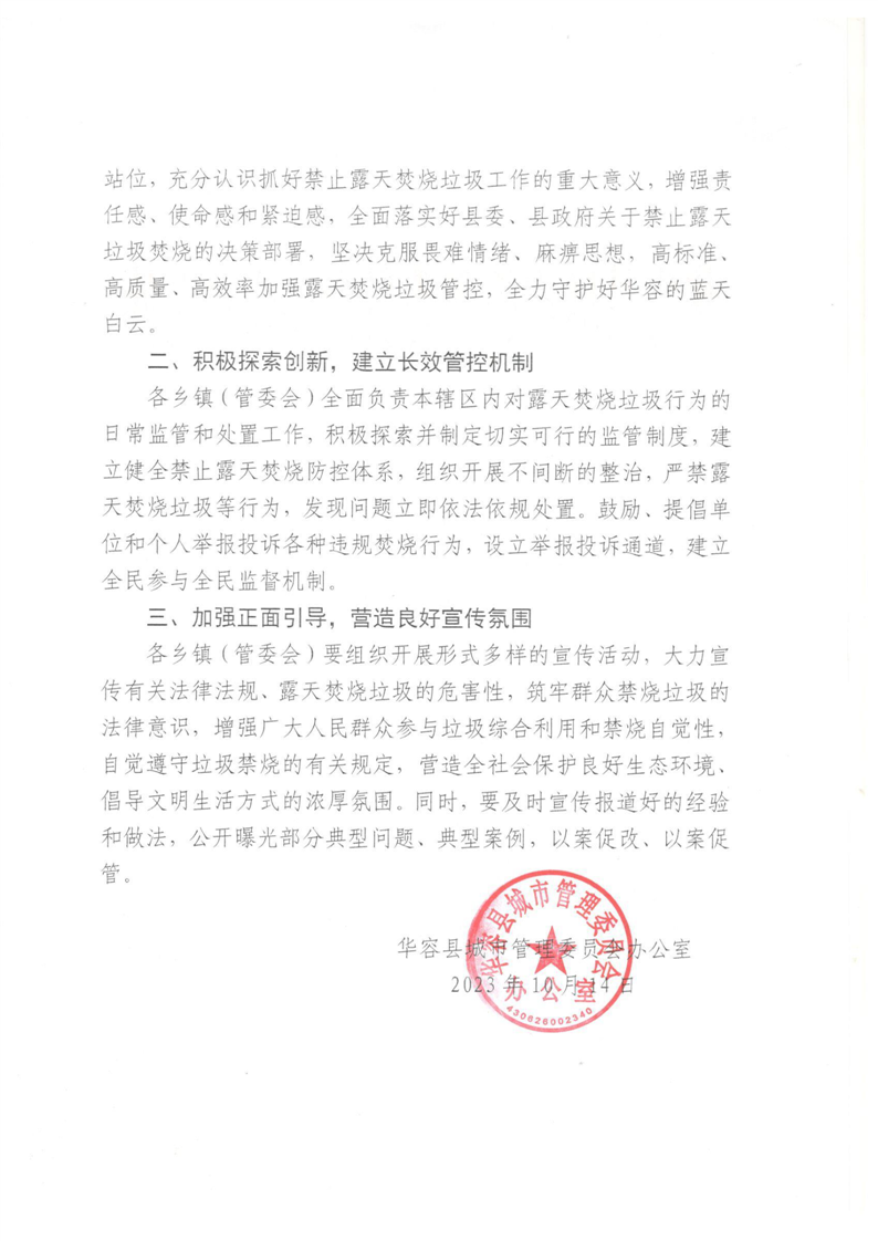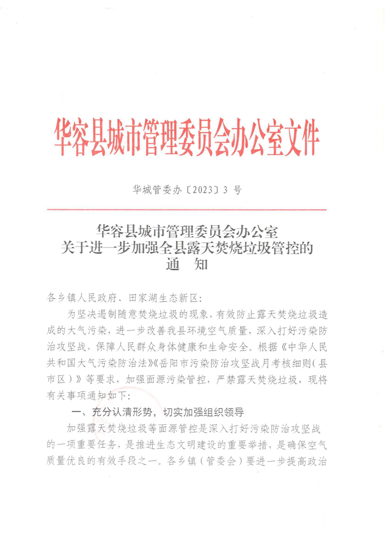 关于进一步加强全县露天焚烧垃圾管控的通知