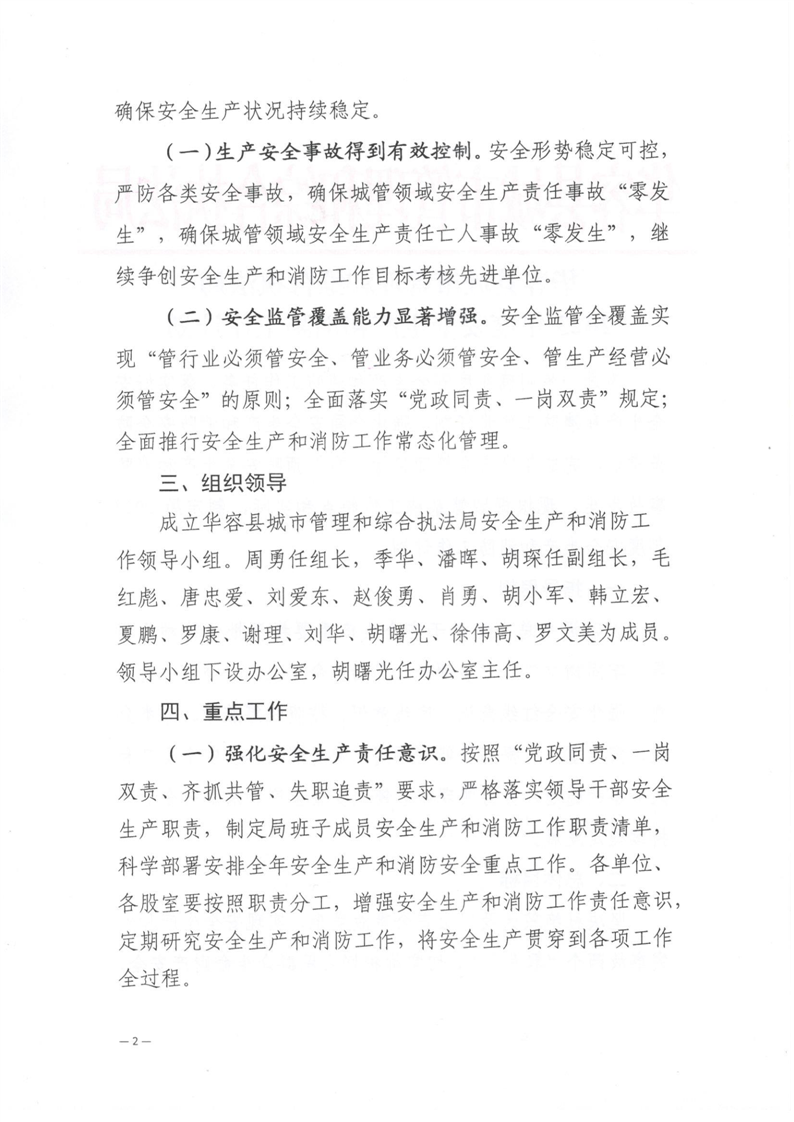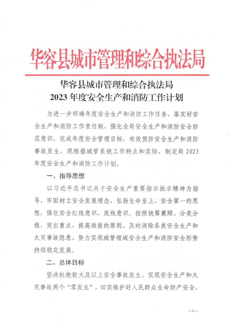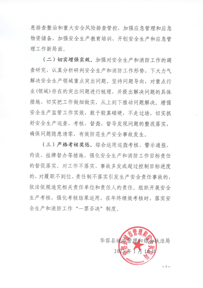 华容县城市管理和综合执法局2023年度安全生产和消防工作计划
