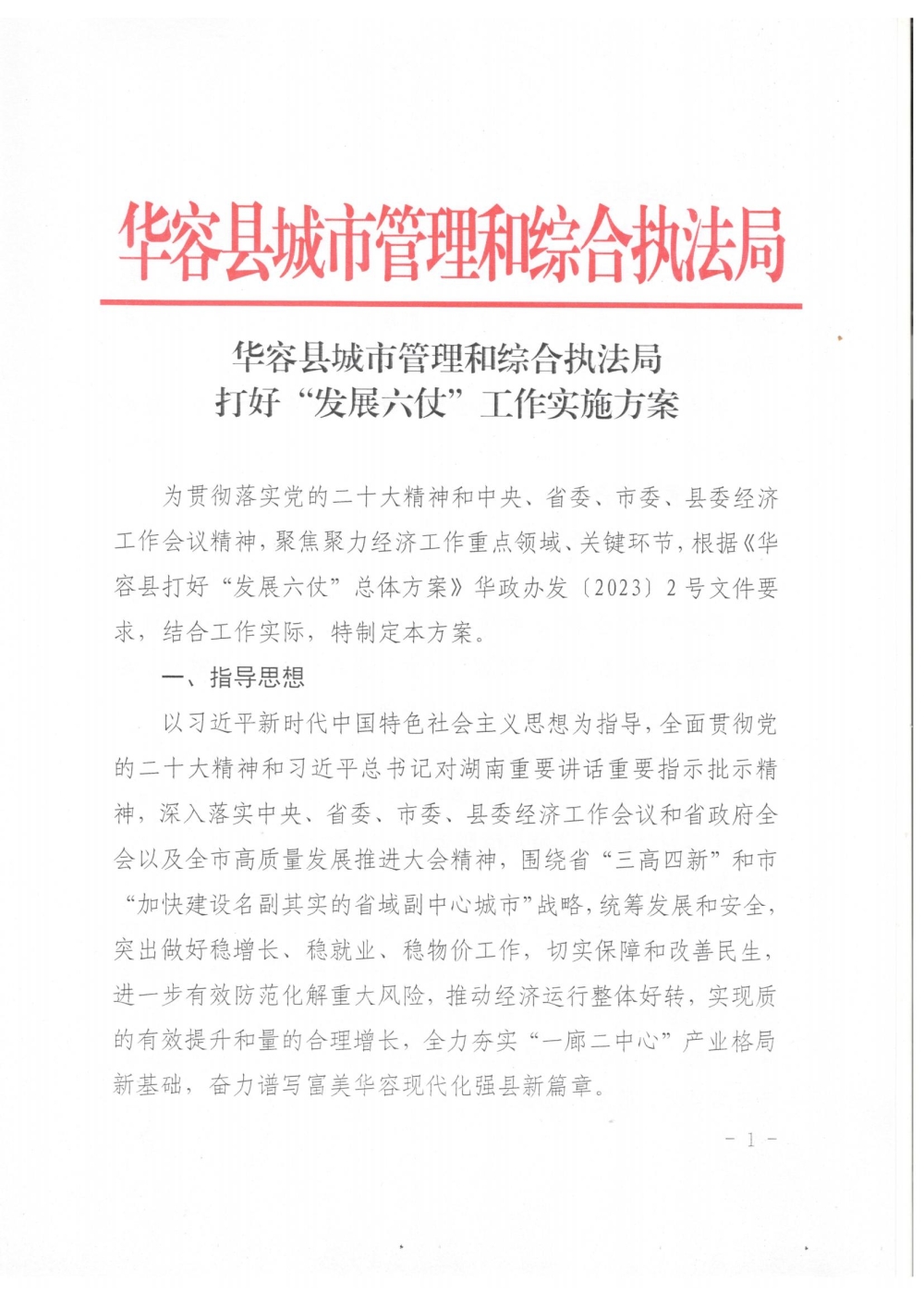 华容县城市管理和综合执法局打好“发展”六仗工作实施方案
