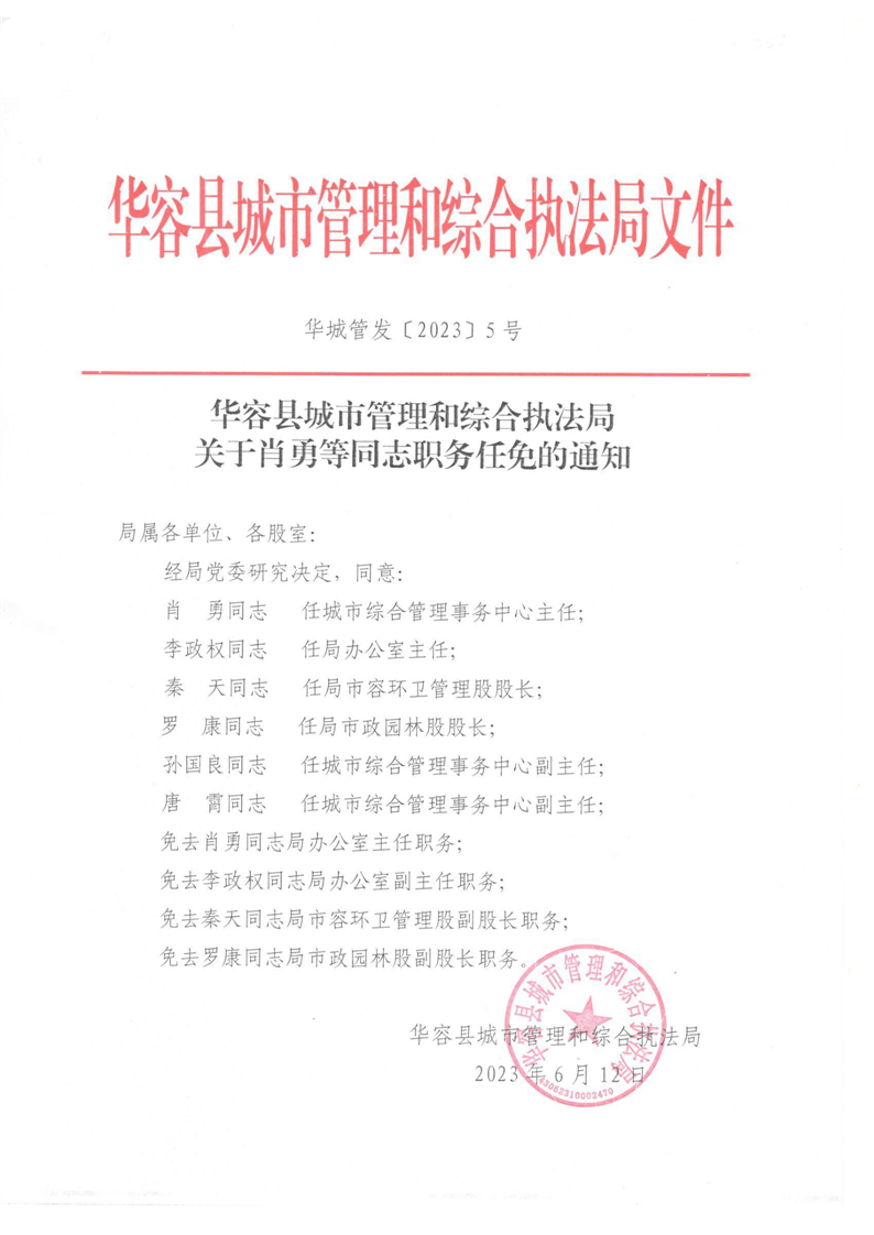 县城管局关于肖勇等同志职务任免的通知