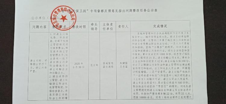 省“蓝天保卫战”专项督察反馈意见指出问题整改任务公示表