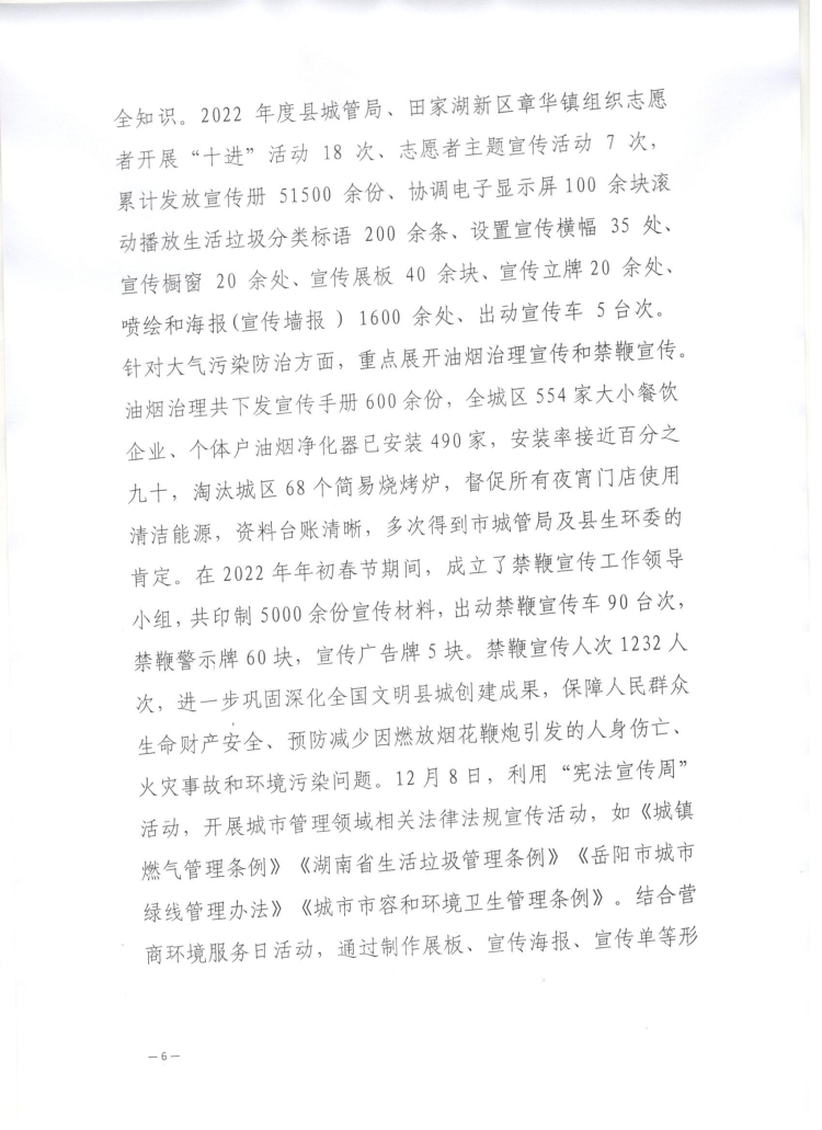 华容县城市管理和综合执法局《2022年法治政府建设情况年度报告》