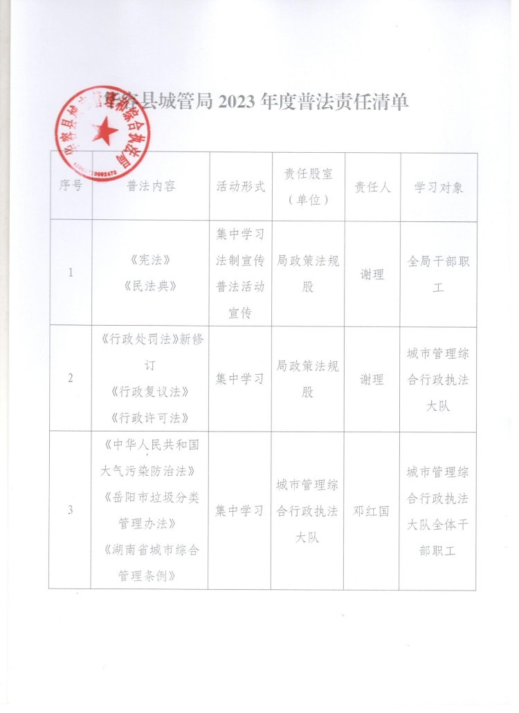 华容县城管局2023年度普法责任清单