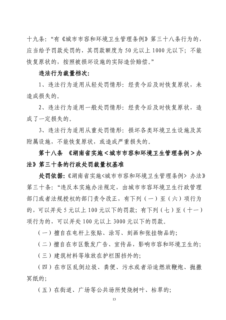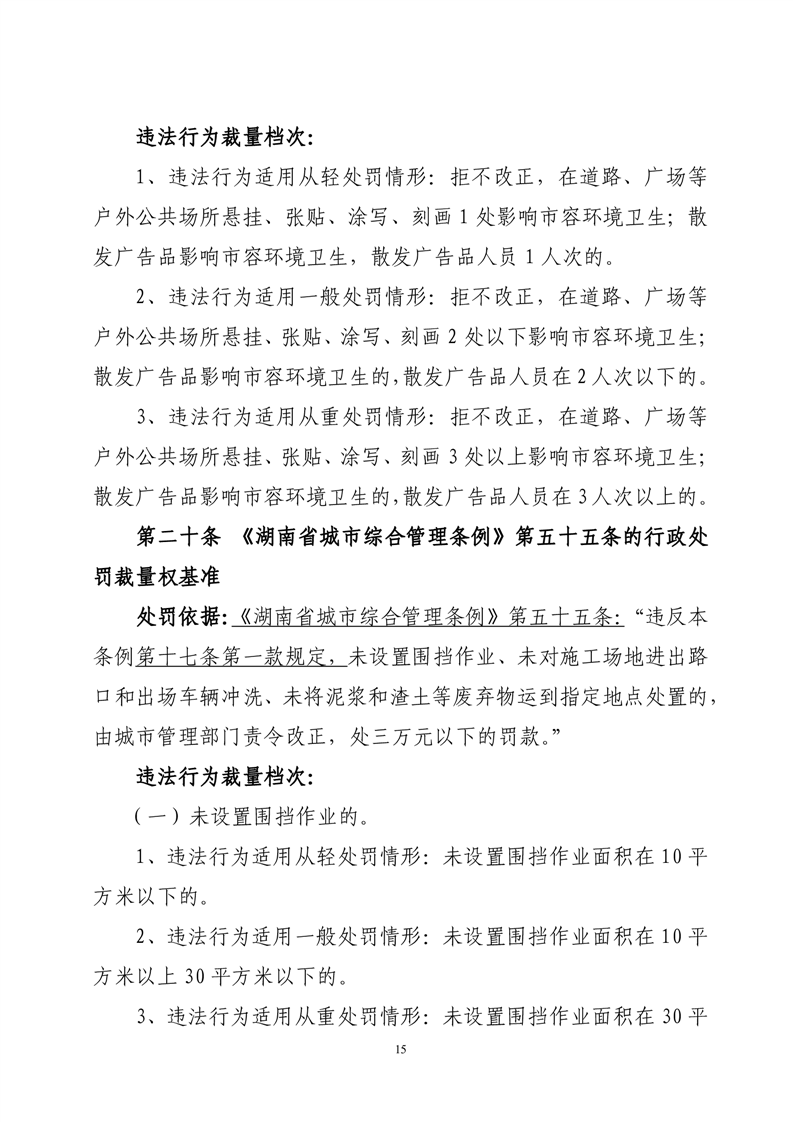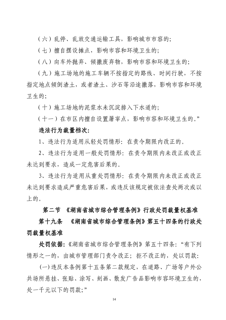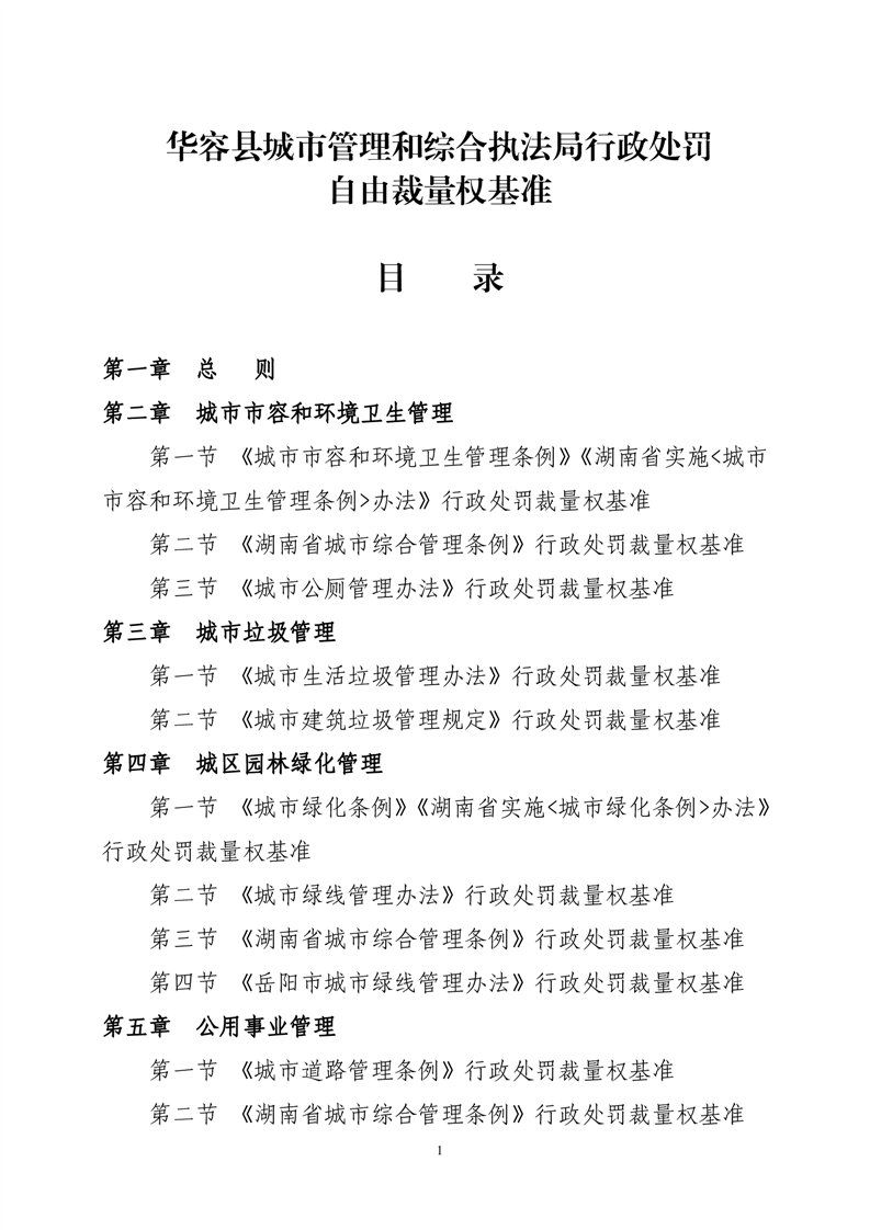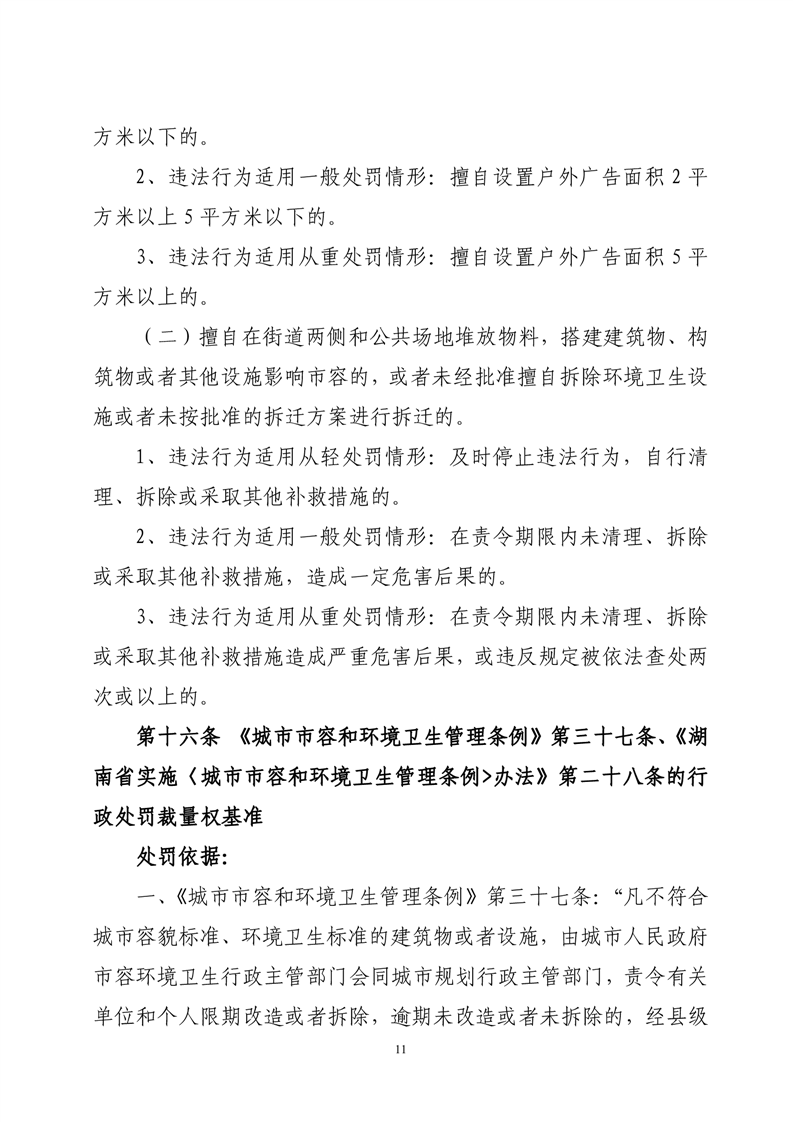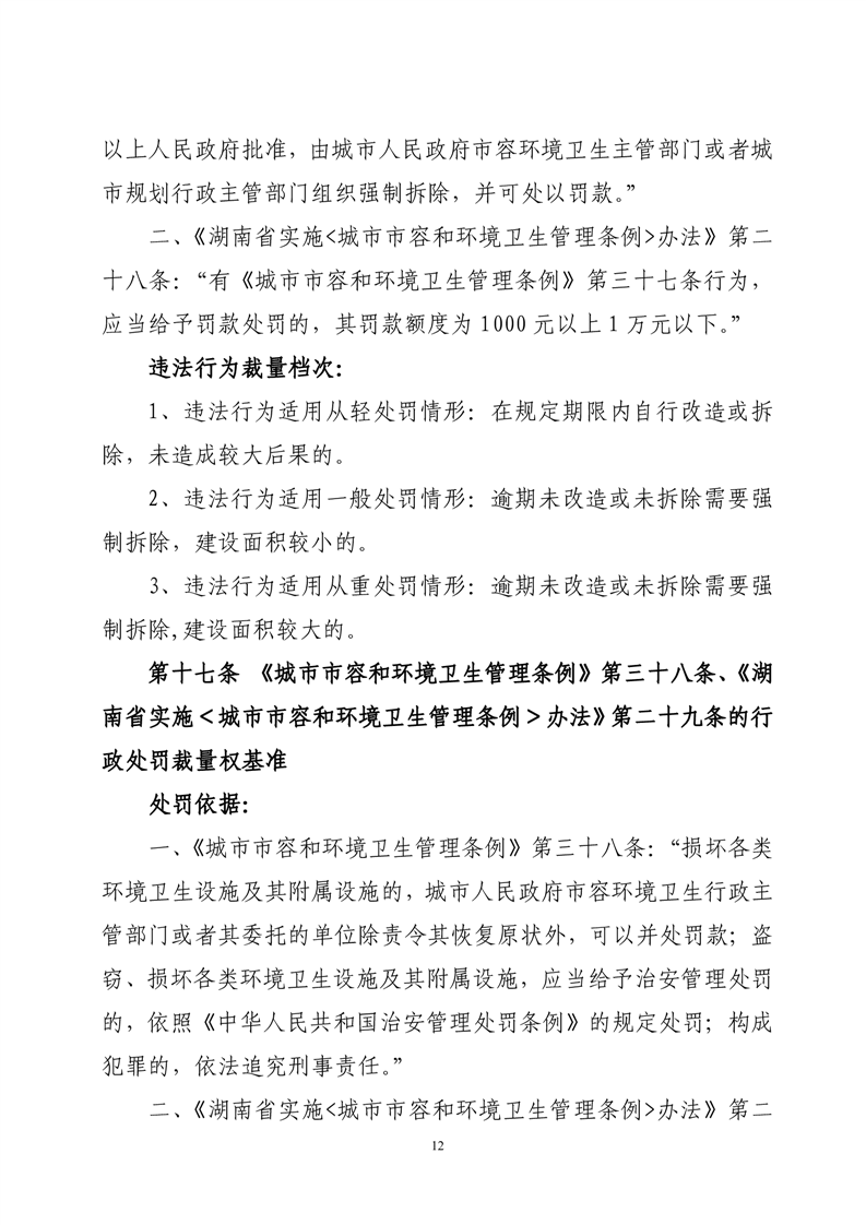 华容县城市管理和综合执法局行政处罚裁量权基准