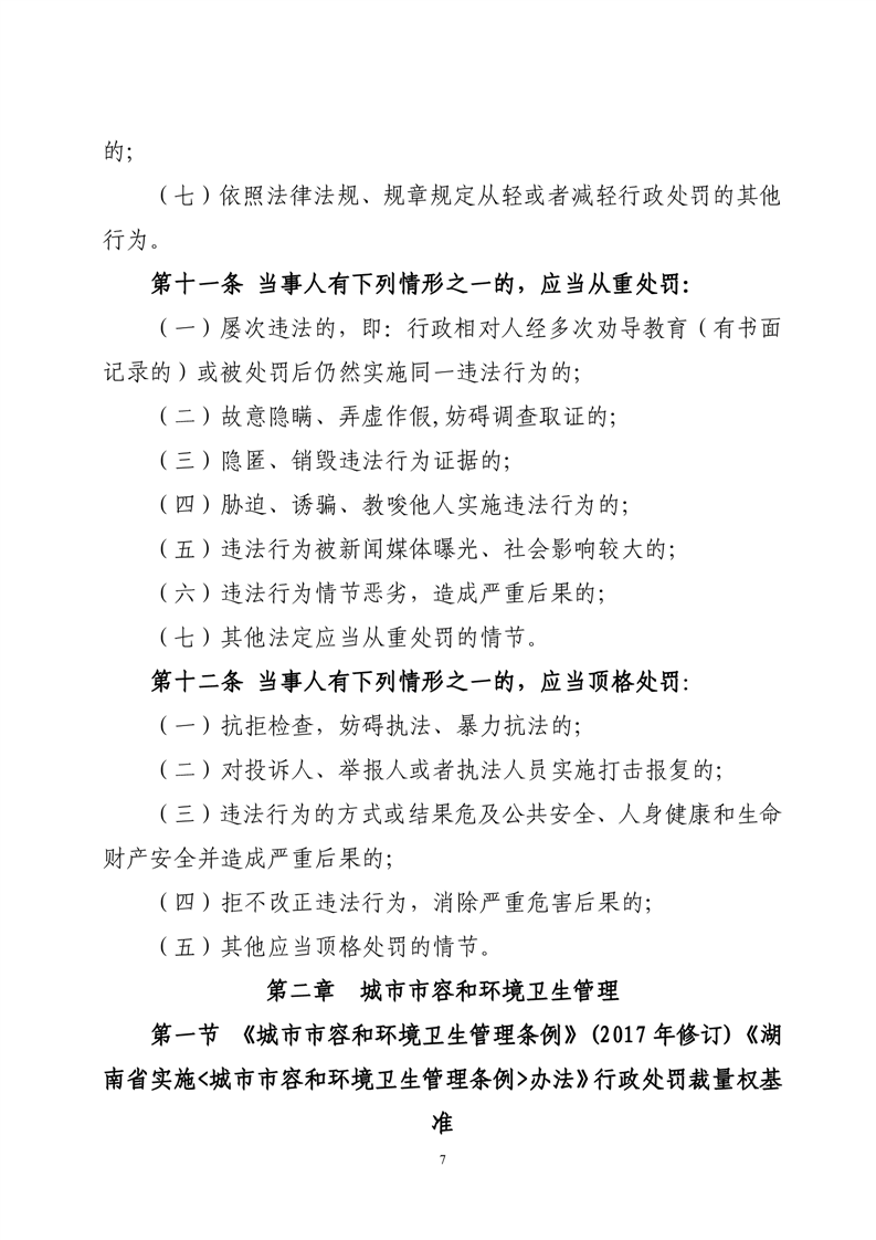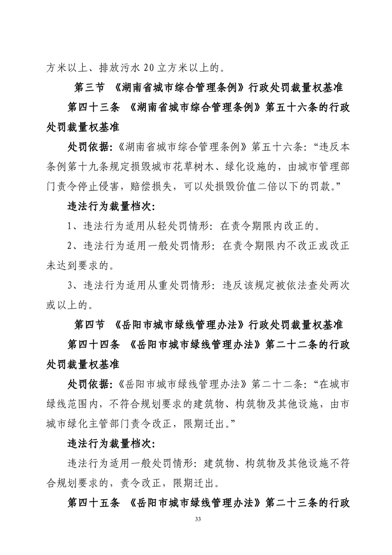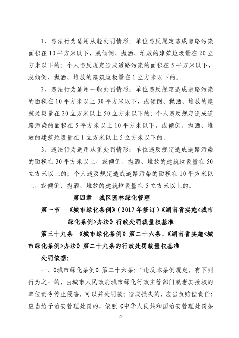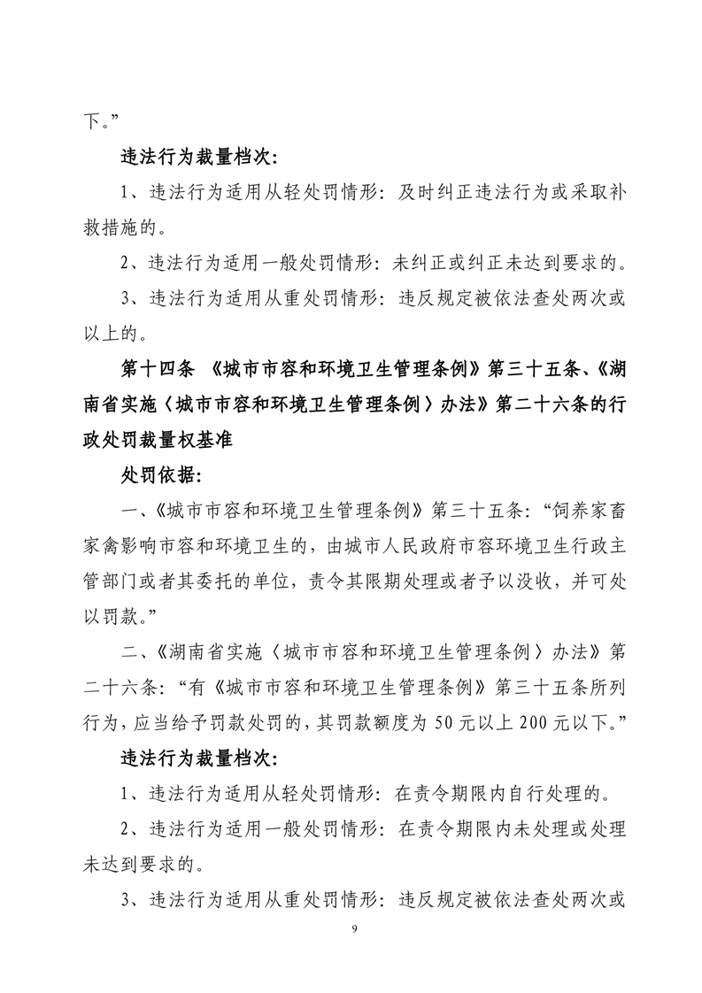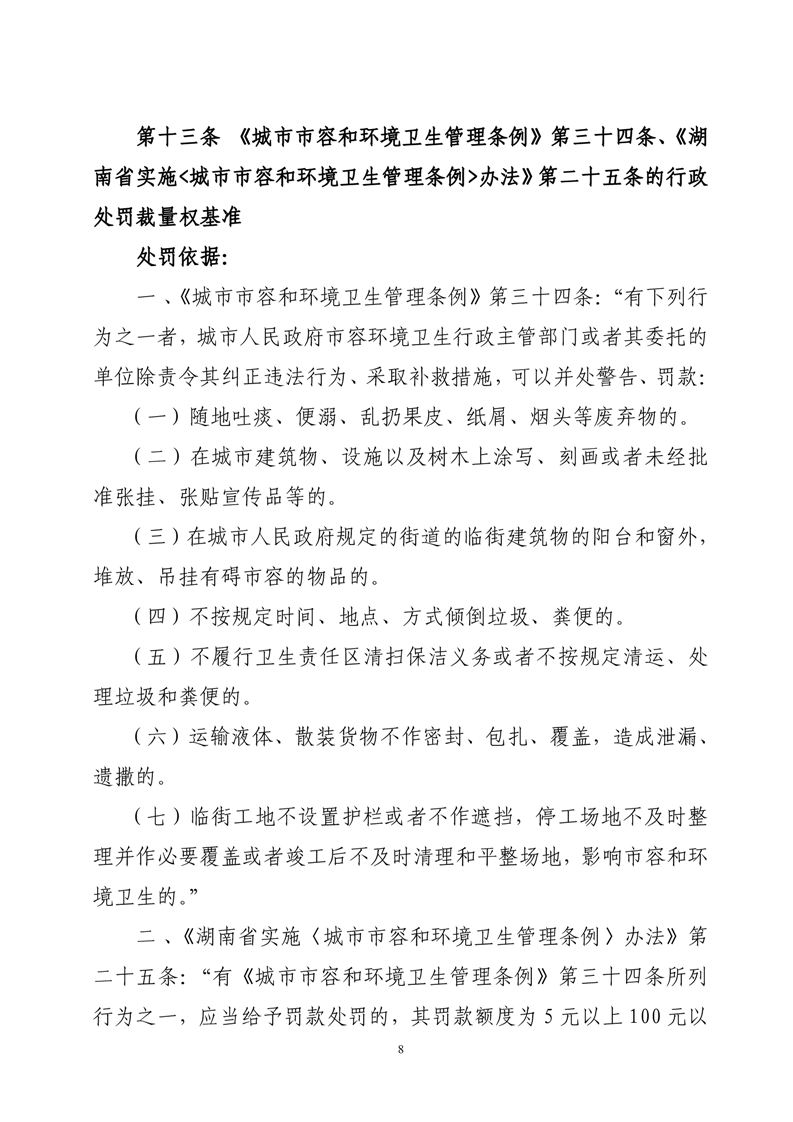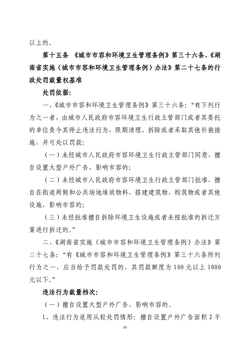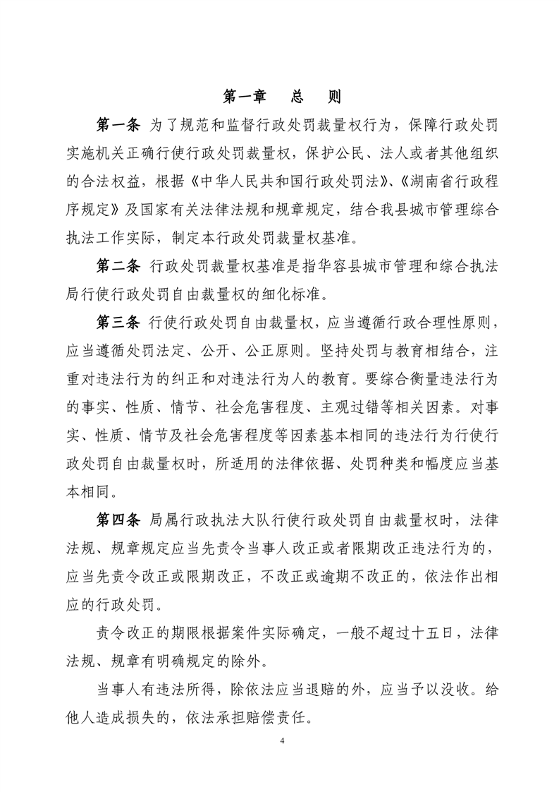 华容县城市管理和综合执法局行政处罚裁量权基准