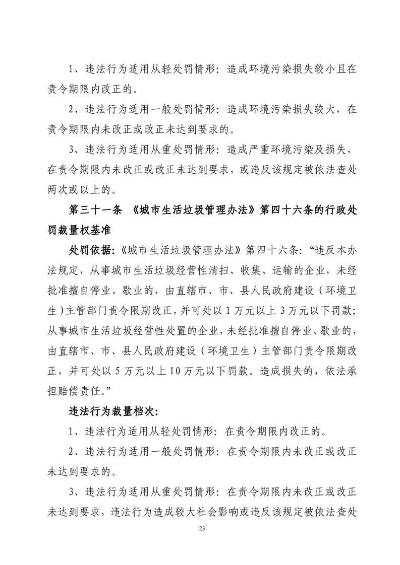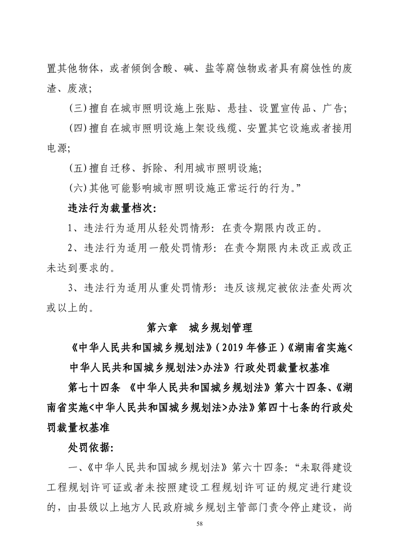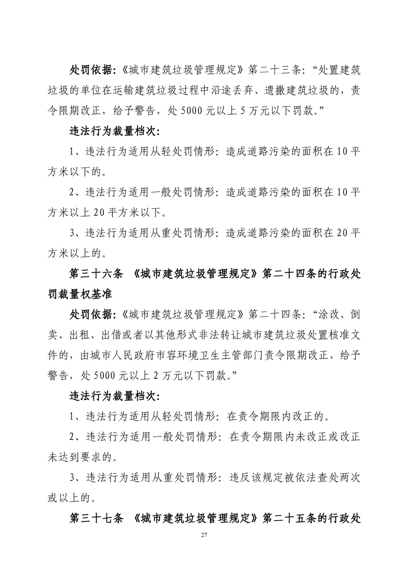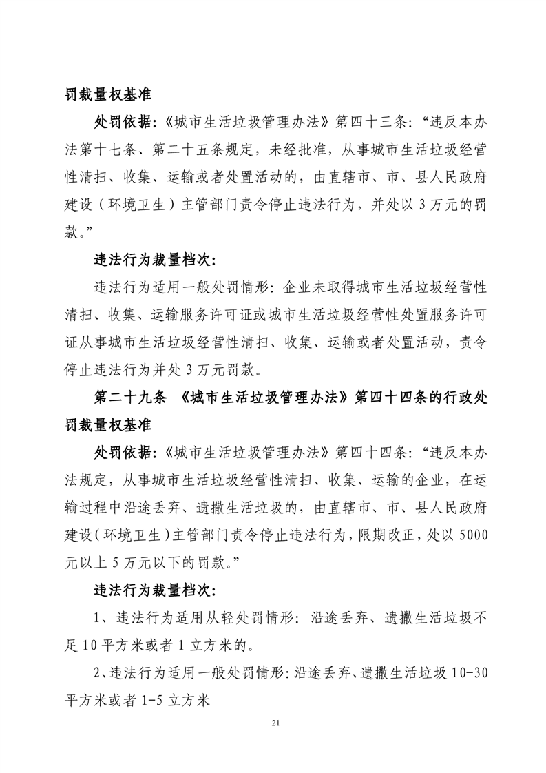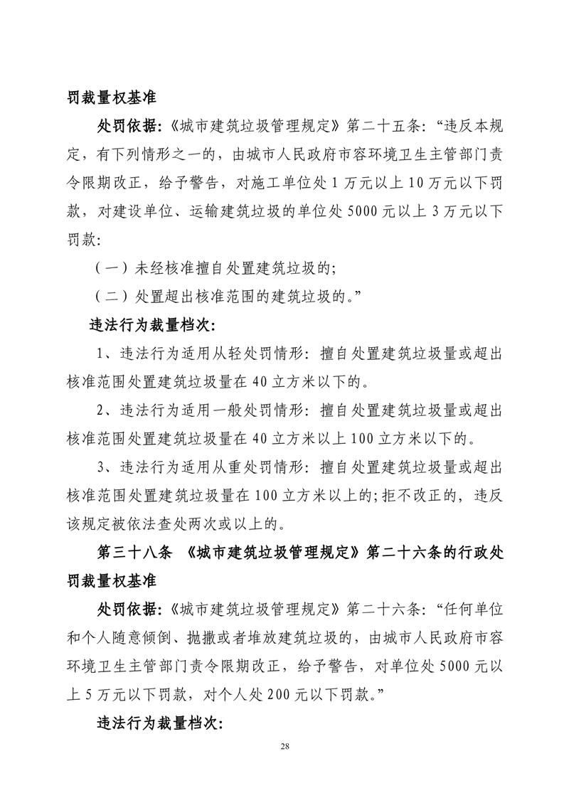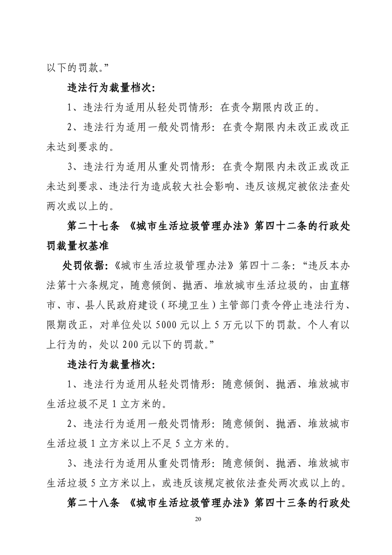 华容县城市管理和综合执法局行政处罚裁量权基准