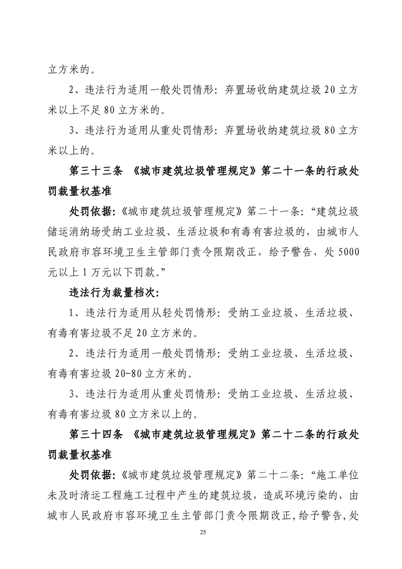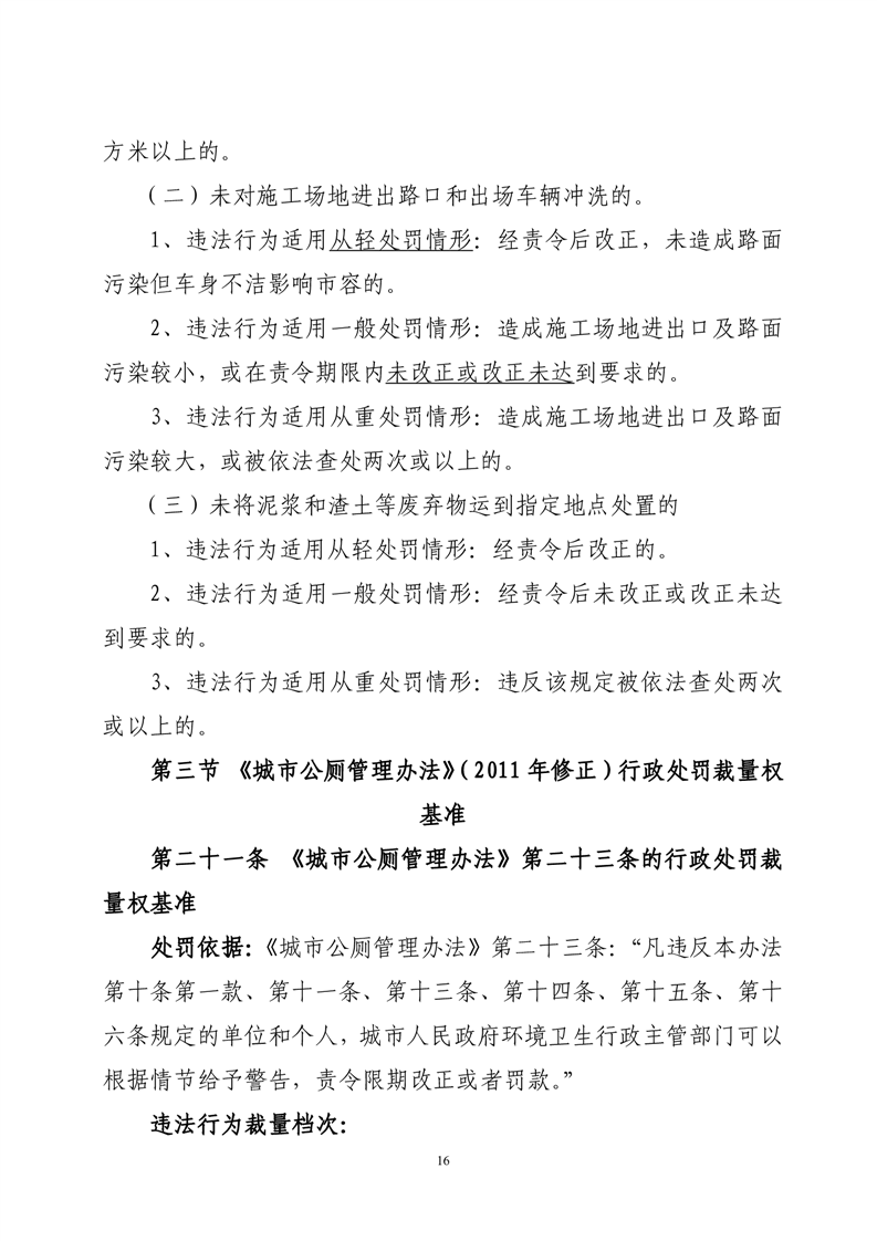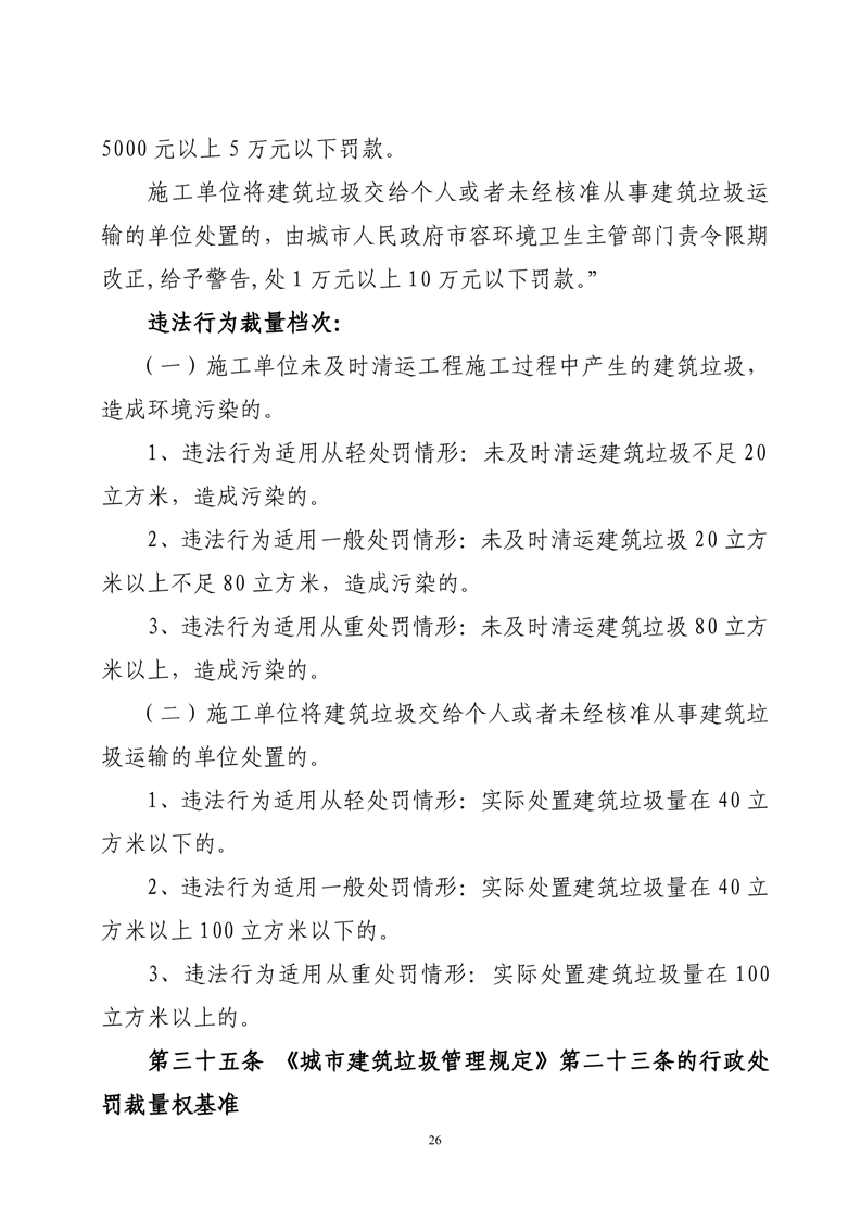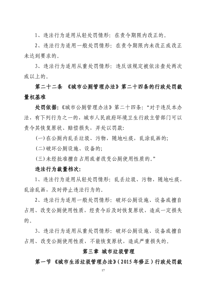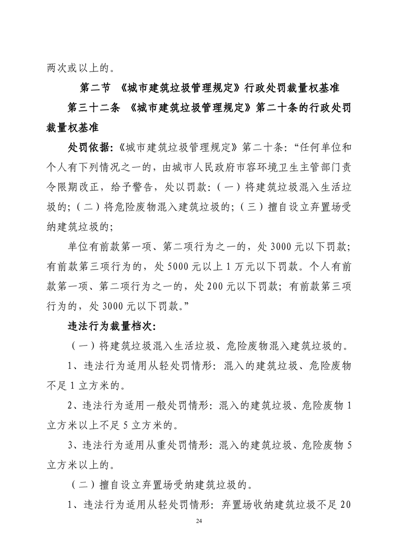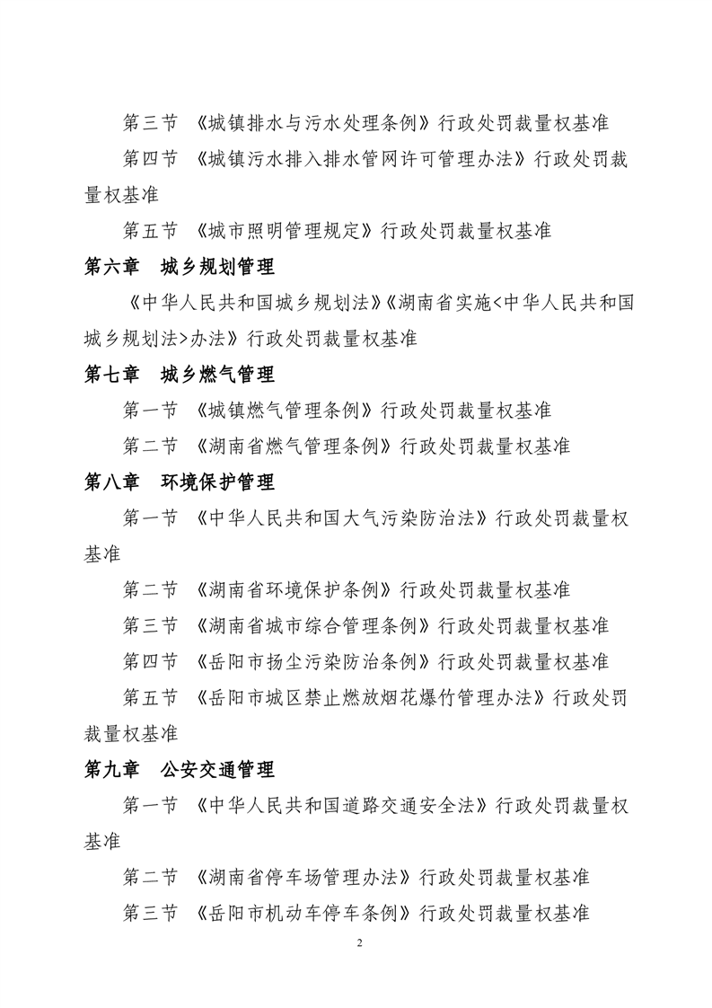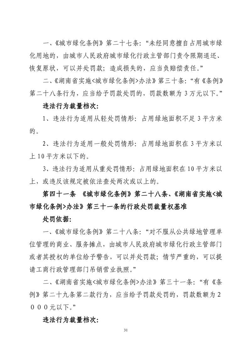 华容县城市管理和综合执法局行政处罚裁量权基准