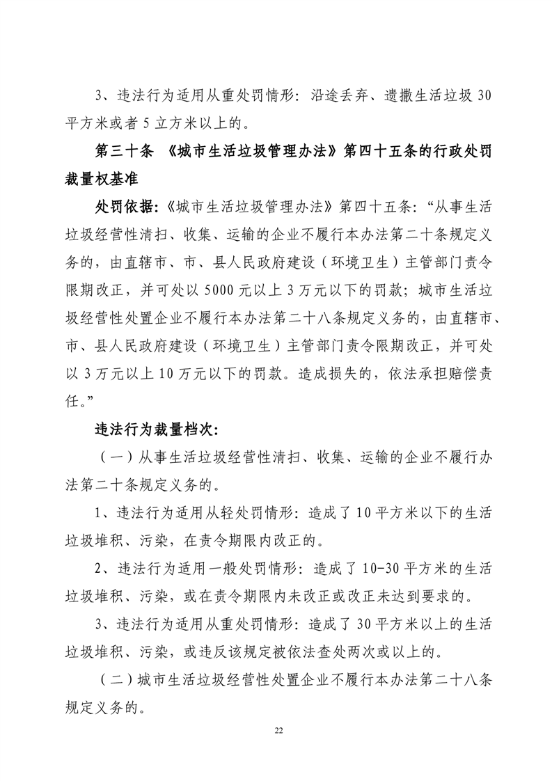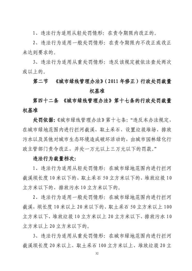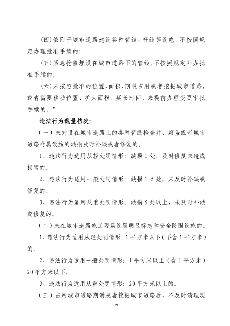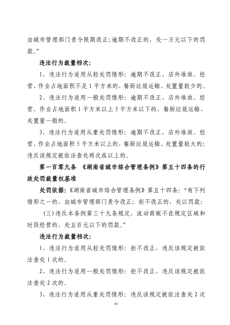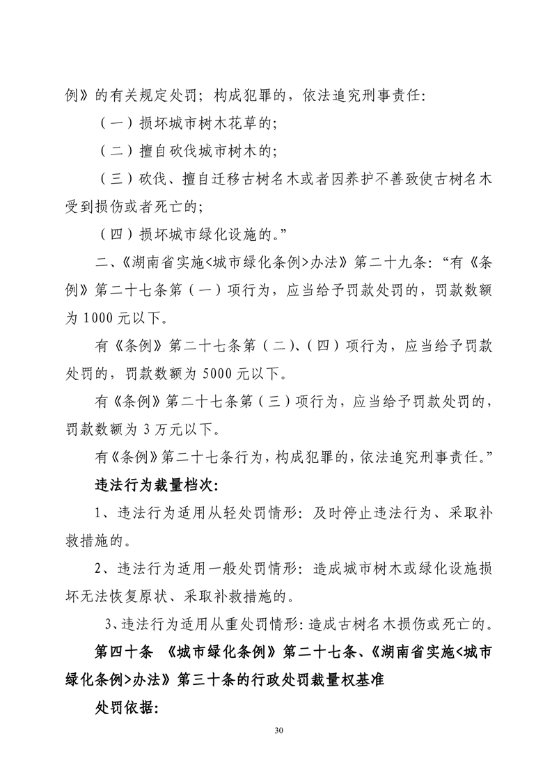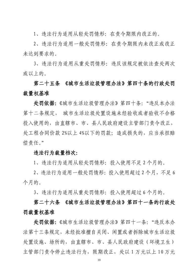 华容县城市管理和综合执法局行政处罚裁量权基准