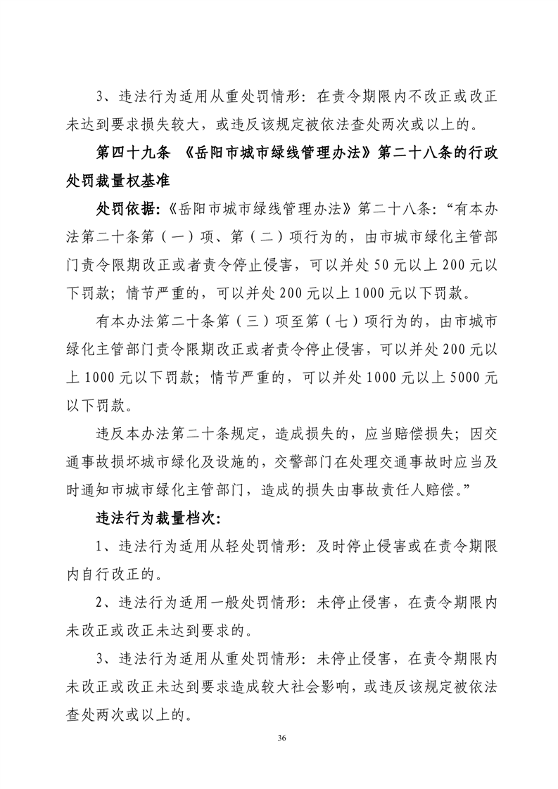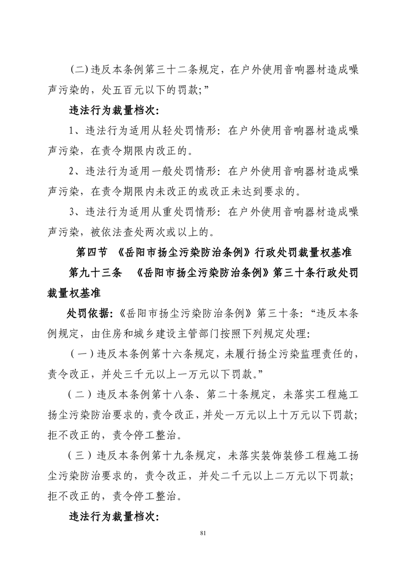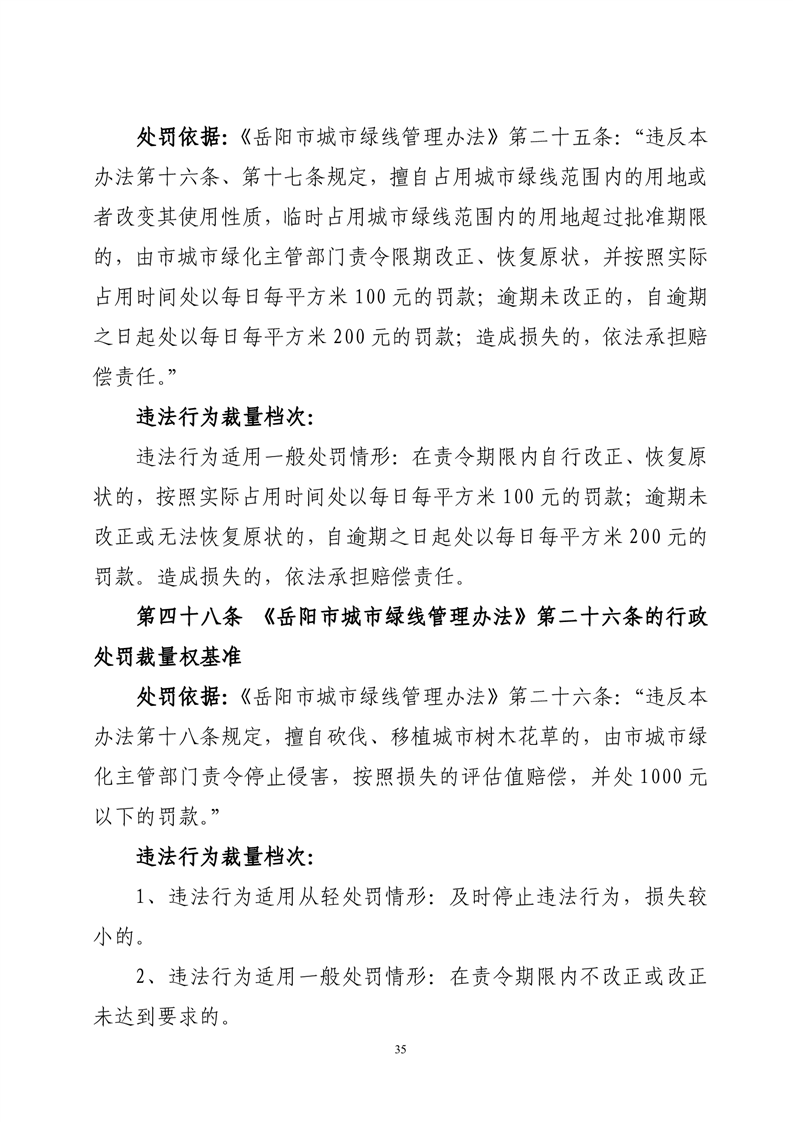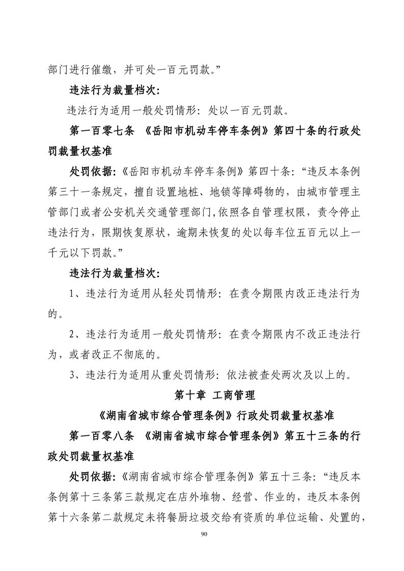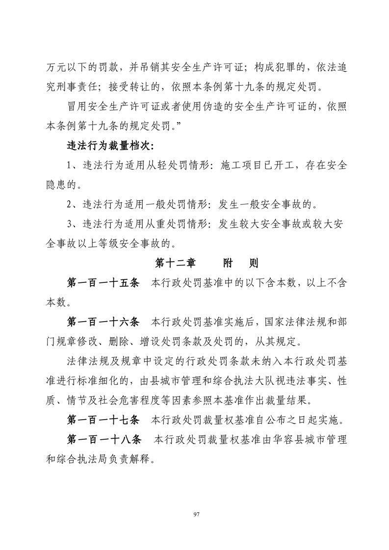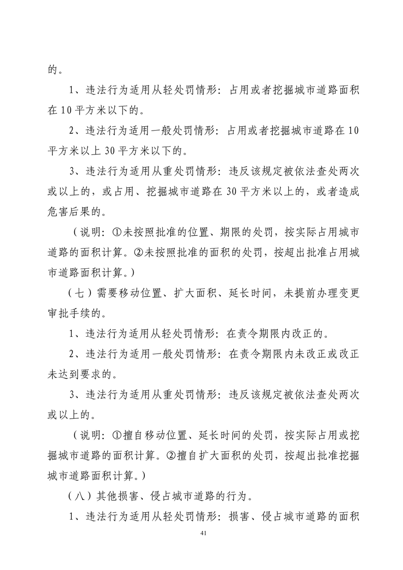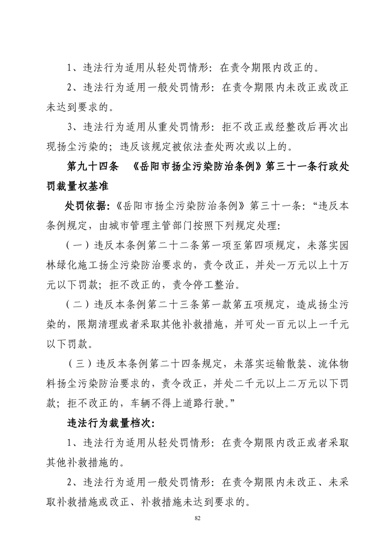 华容县城市管理和综合执法局行政处罚裁量权基准