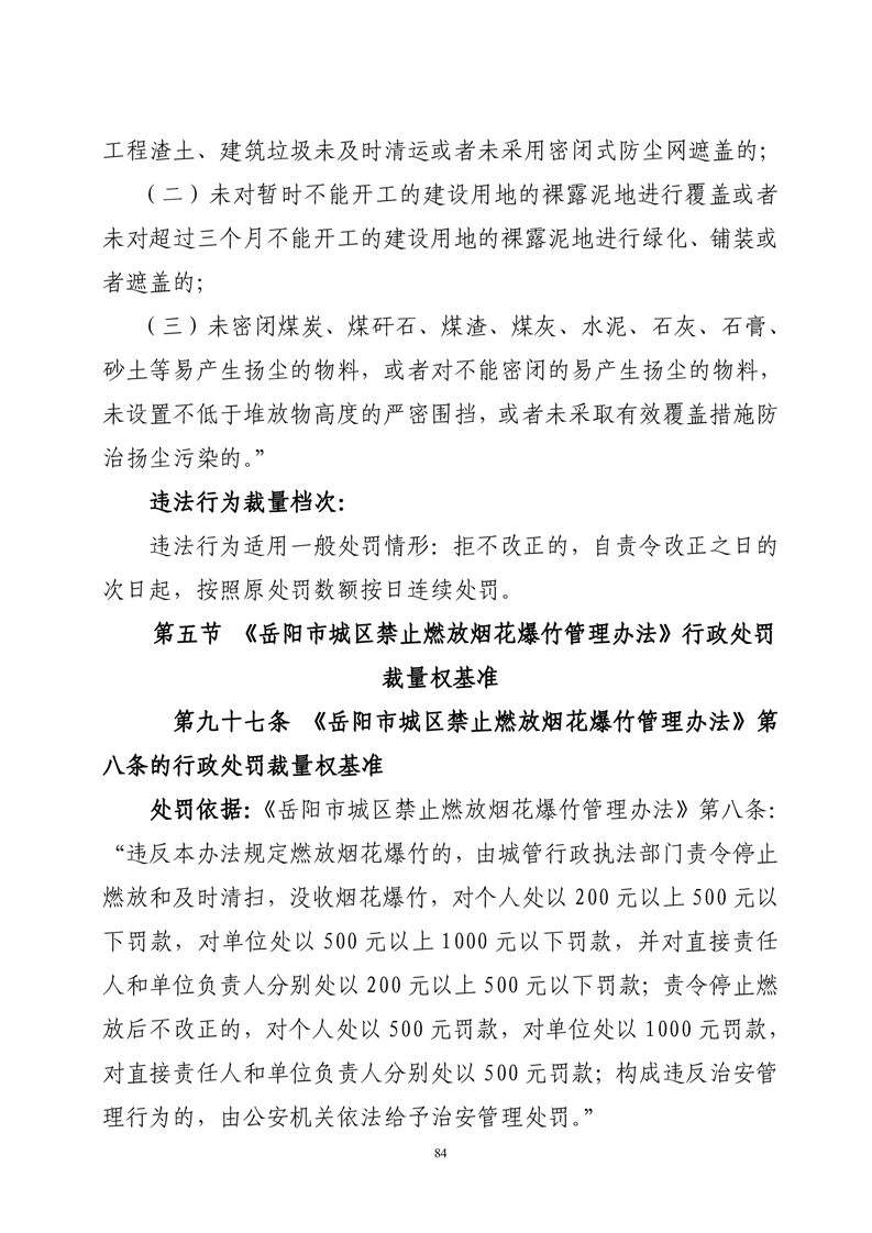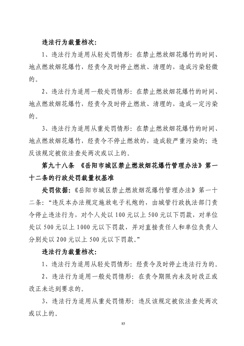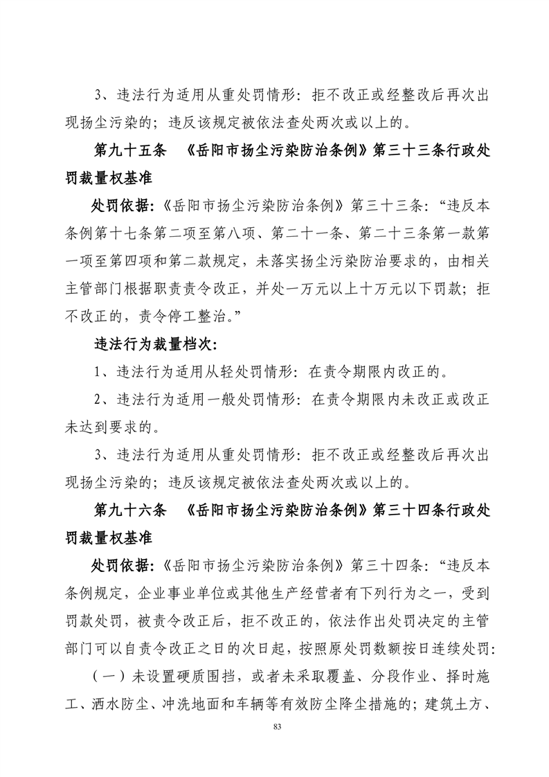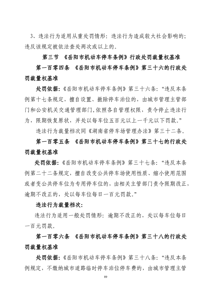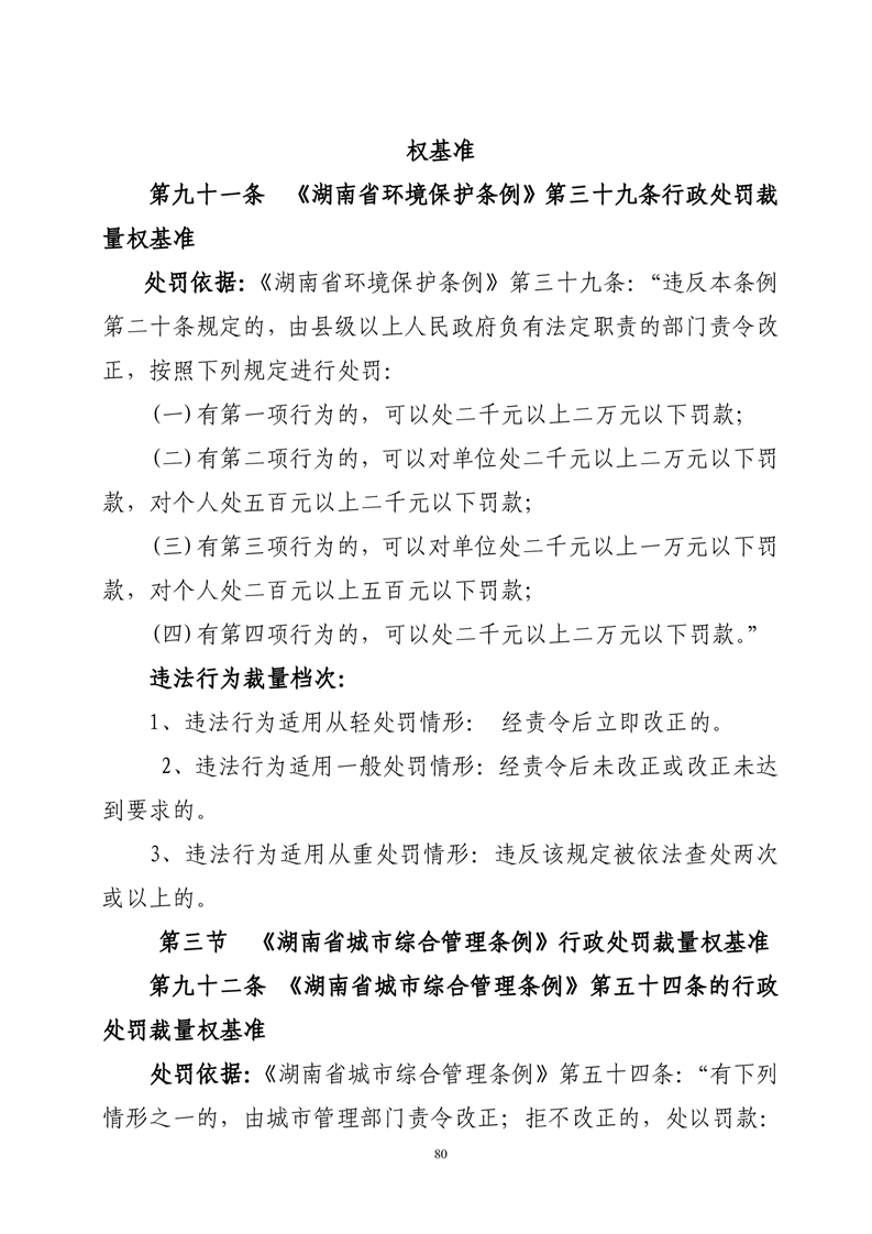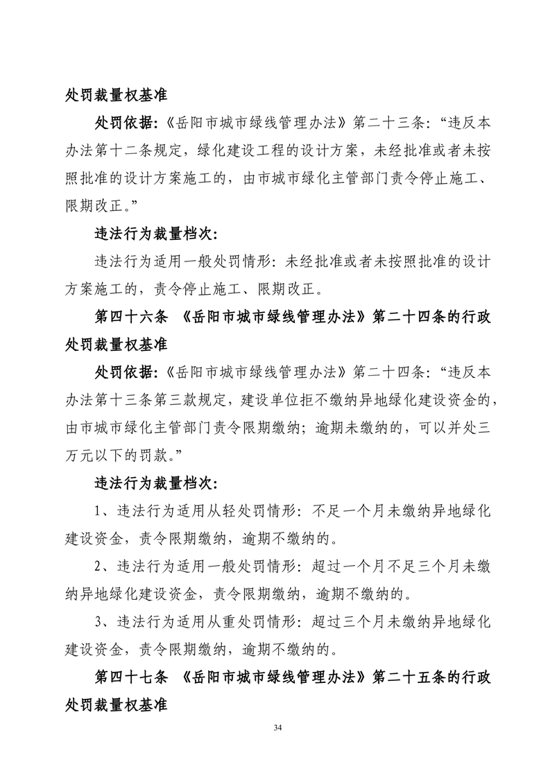 华容县城市管理和综合执法局行政处罚裁量权基准