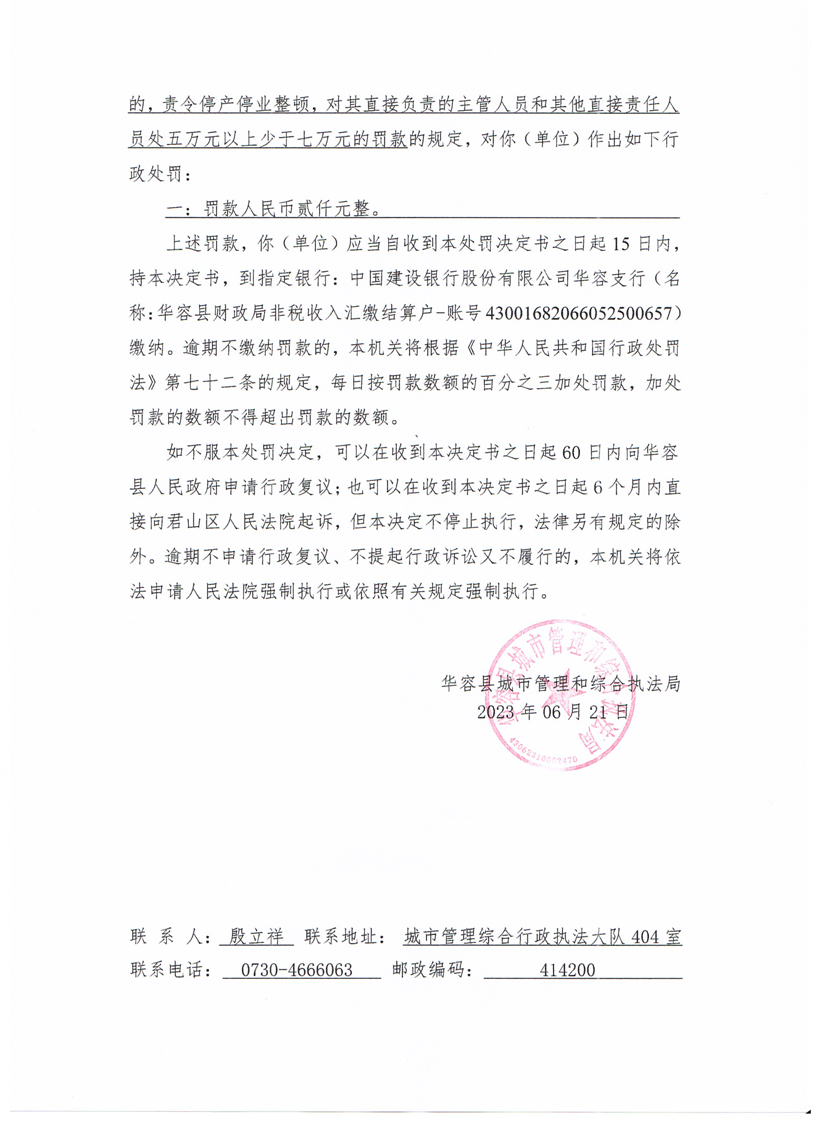 (华城执罚决字[2023]16号)对华容县东山镇李某违反安全生产法的行政处罚决定公示