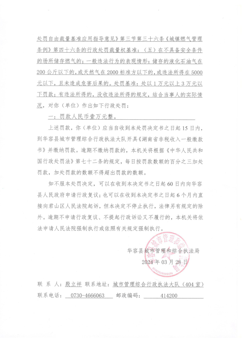 (华城执罚决字(2024)03号)对华容县周某违反城镇燃气管理条例的行政处罚决定公示