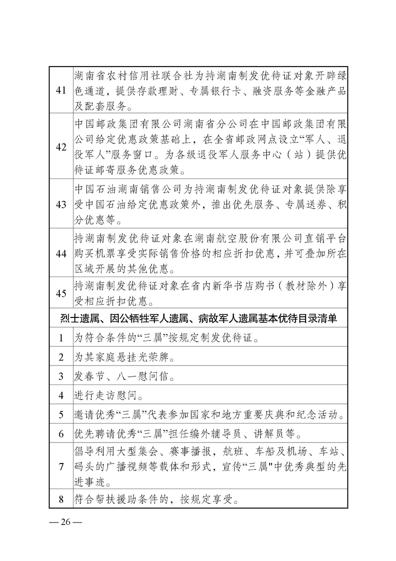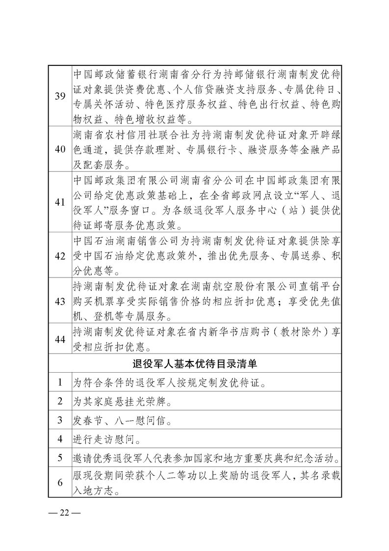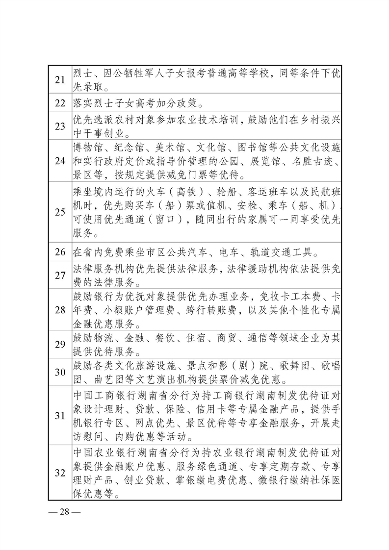 湖南省退役军人事务厅等24部门关于印发《湖南省加强军人军属、退役军人和其他优抚对象优待工作的实施意见》的通知