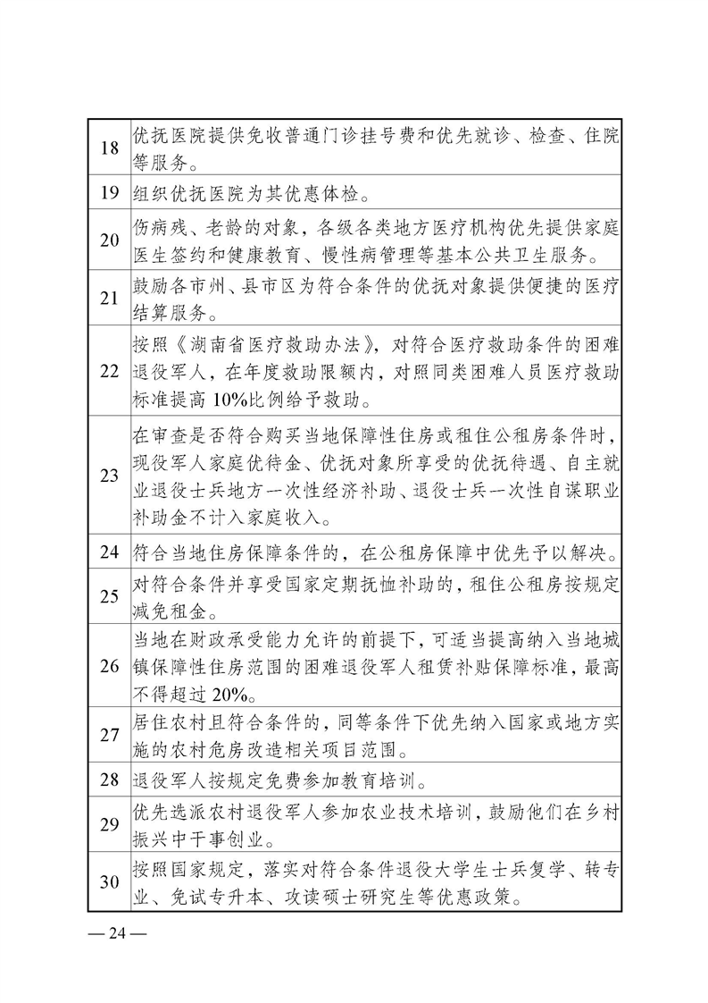 湖南省退役军人事务厅等24部门关于印发《湖南省加强军人军属、退役军人和其他优抚对象优待工作的实施意见》的通知.pdf