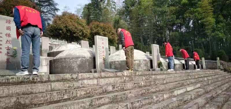 4月2日,华容县退役军人事务局在县烈士陵园开展代祭扫活动,工作人员以敬献鲜花,行三鞠躬礼,擦拭墓碑的代祭扫方式,祭奠长眠在这里的2000多位烈士。