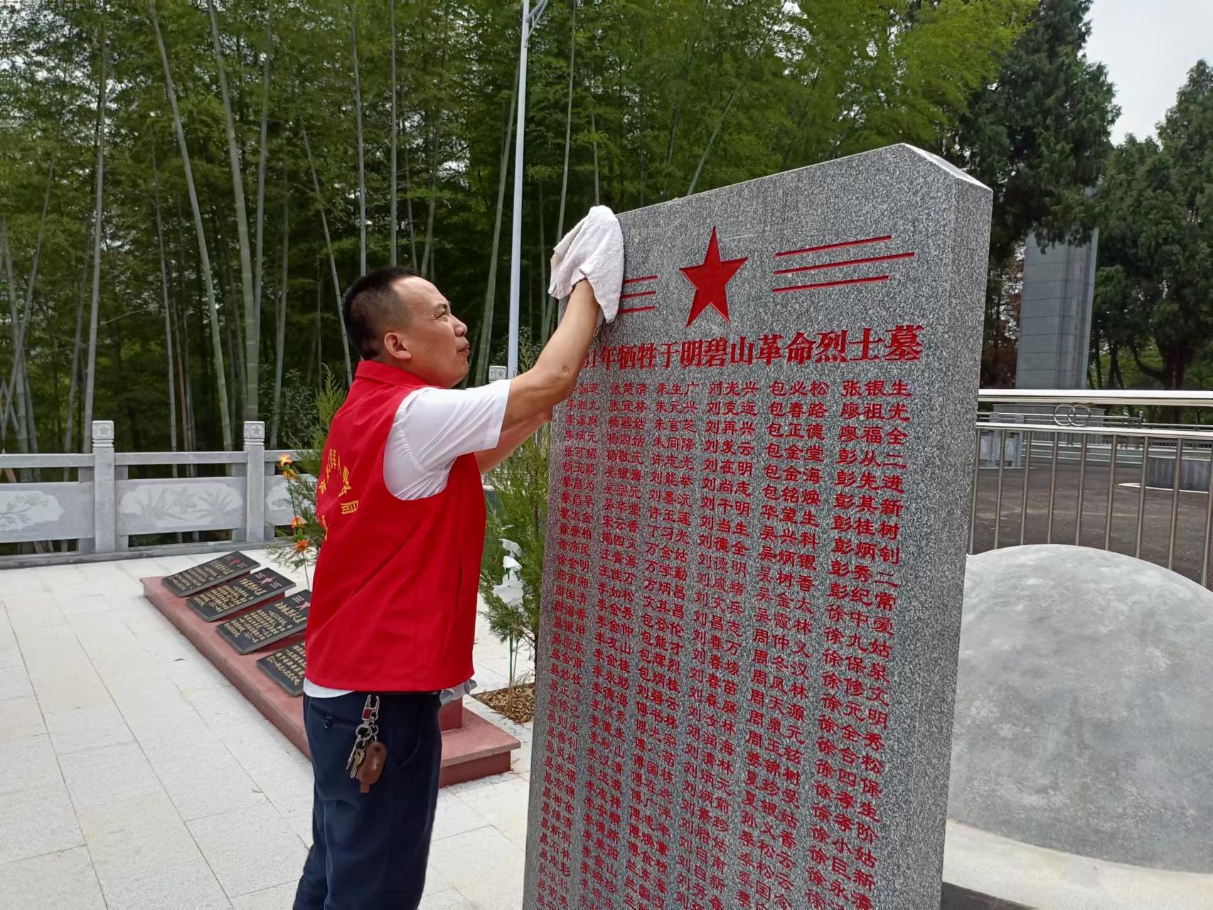 当天,退役军人事务局机关党支部全体成员还到明碧山革命烈士纪念地,在英雄纪念碑前再次庄严宣誓:“我志愿加入中国共产党……随时准备为党和人民牺牲一切,永不叛党。”并为每座烈士墓擦拭一遍墓碑,向革命英烈表达崇敬之心、感念之情、传承之志。