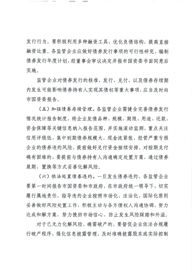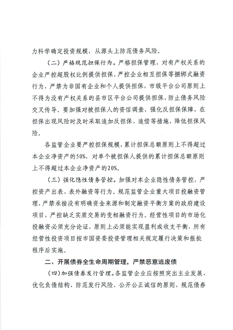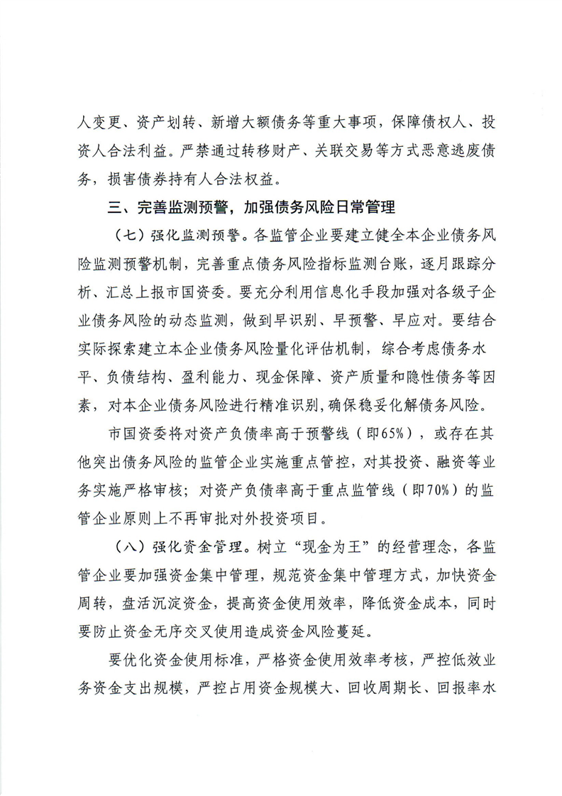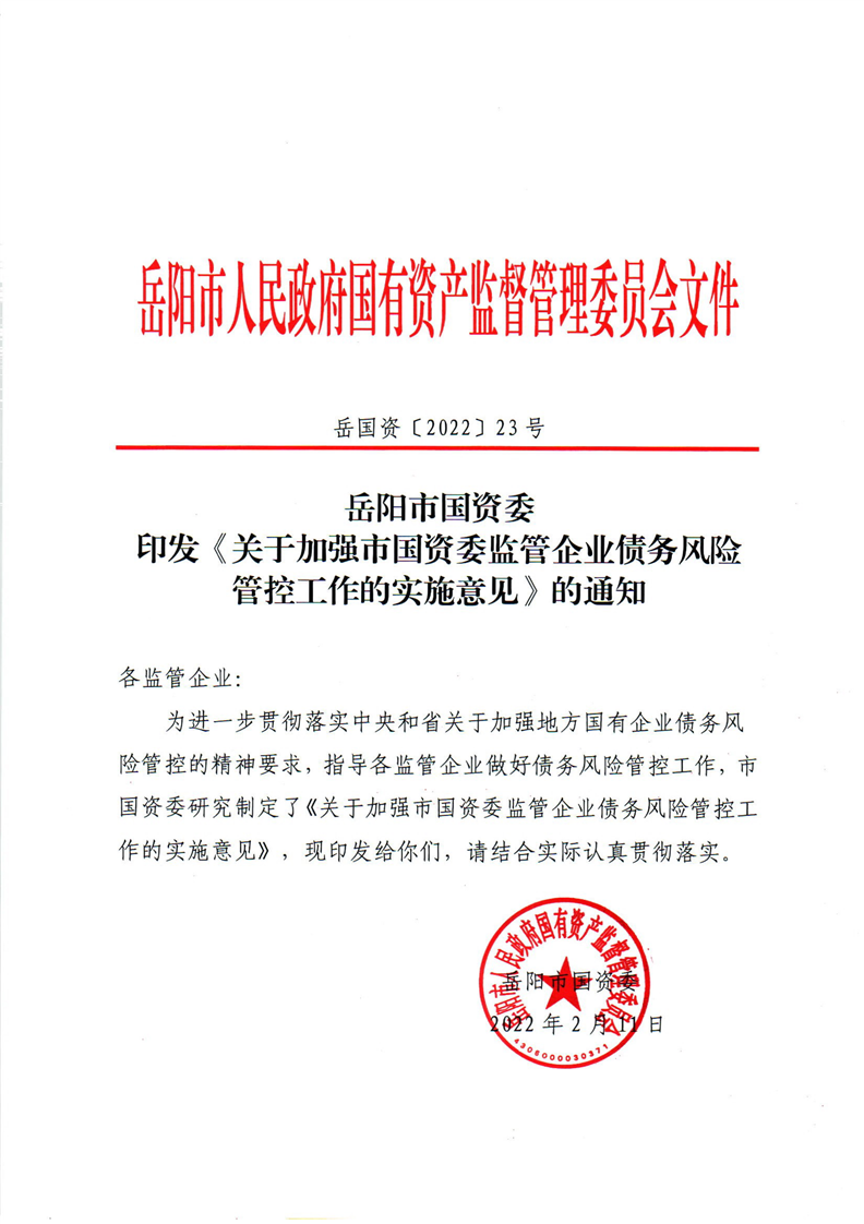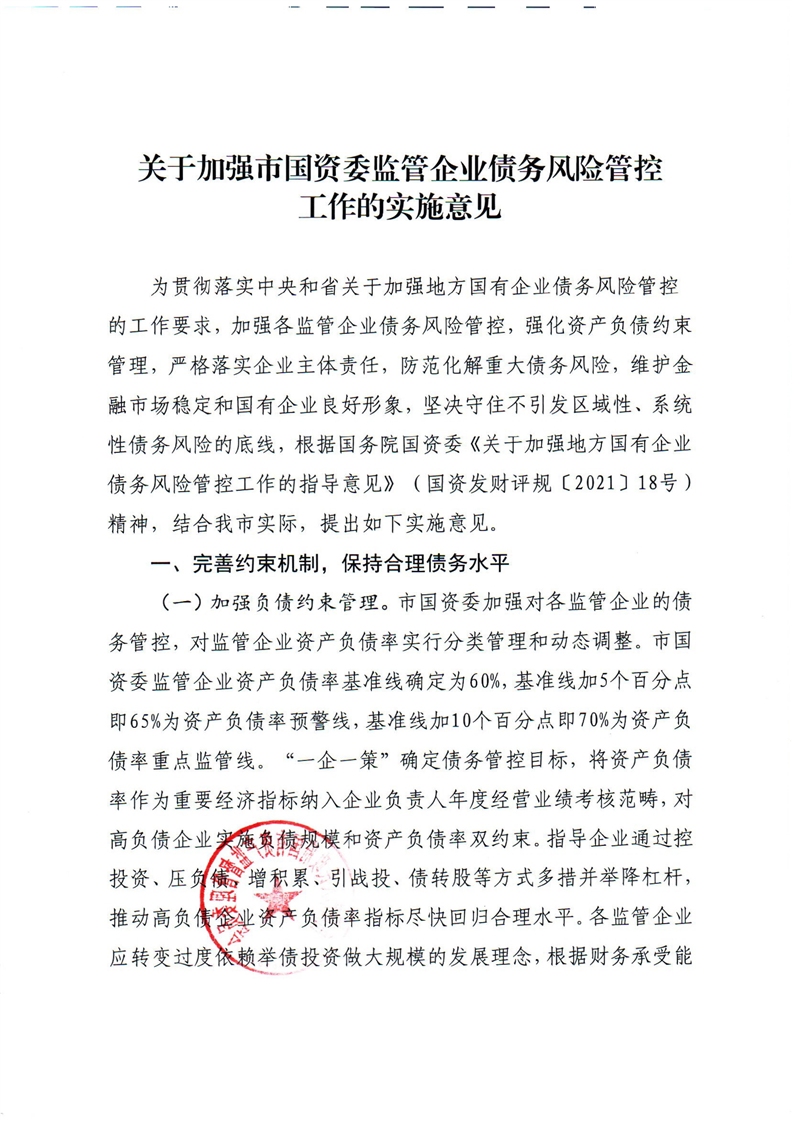 印发《关于加强市国资委监管企业债务风险管控工作的实施意见》的通知