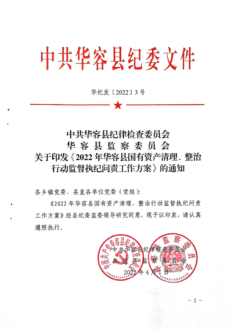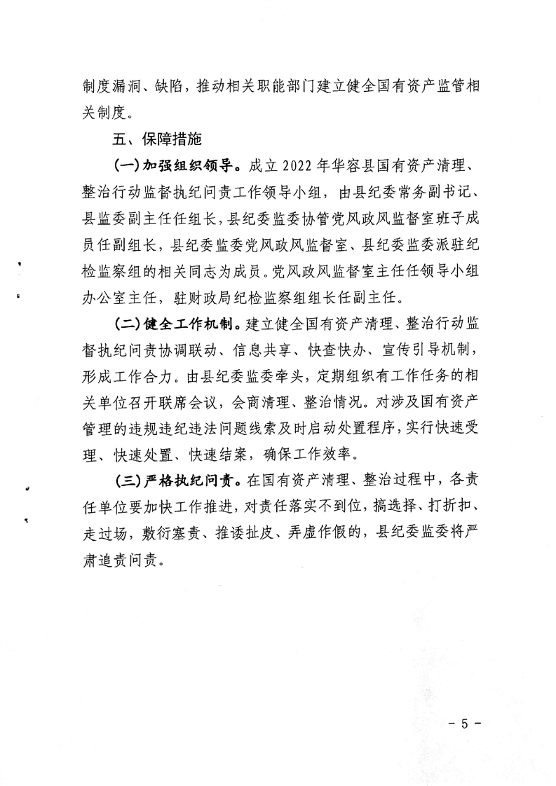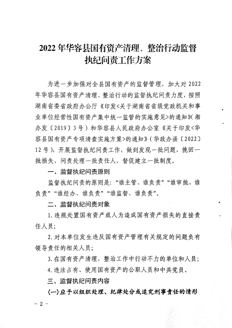 关于印发《2022年华容县国有资产清理、整顿行动监督执纪问责工作方案》的通知