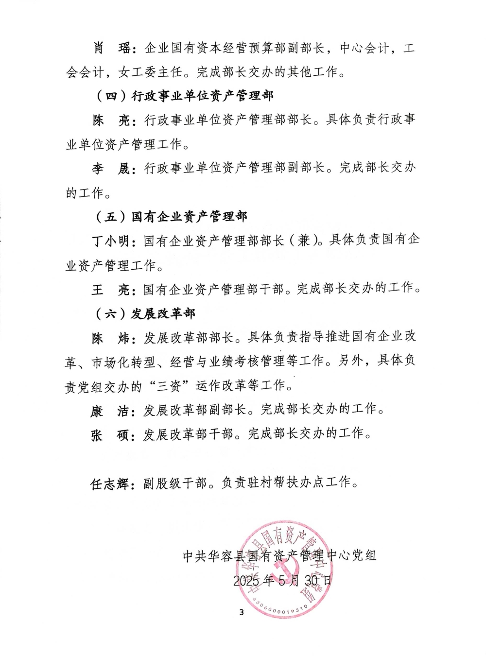 关于印发《华容县国有资产管理中心领导班子成员及机关干部工作分工》的通知