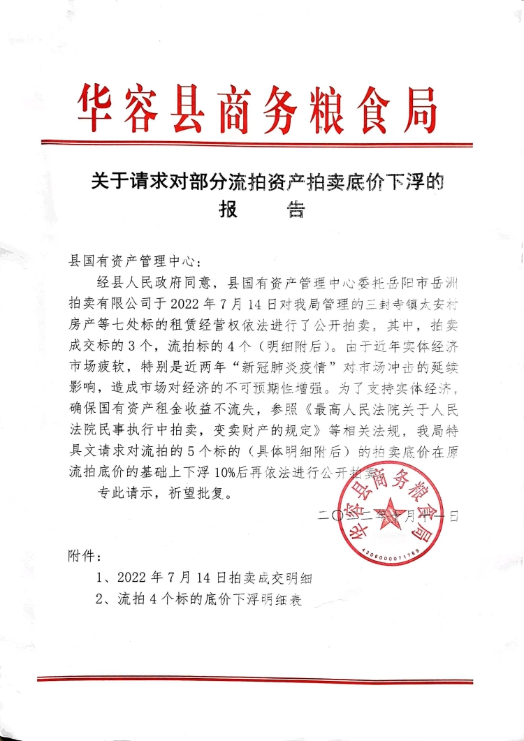 关于请求对部分流拍资产拍卖底价下浮的报告