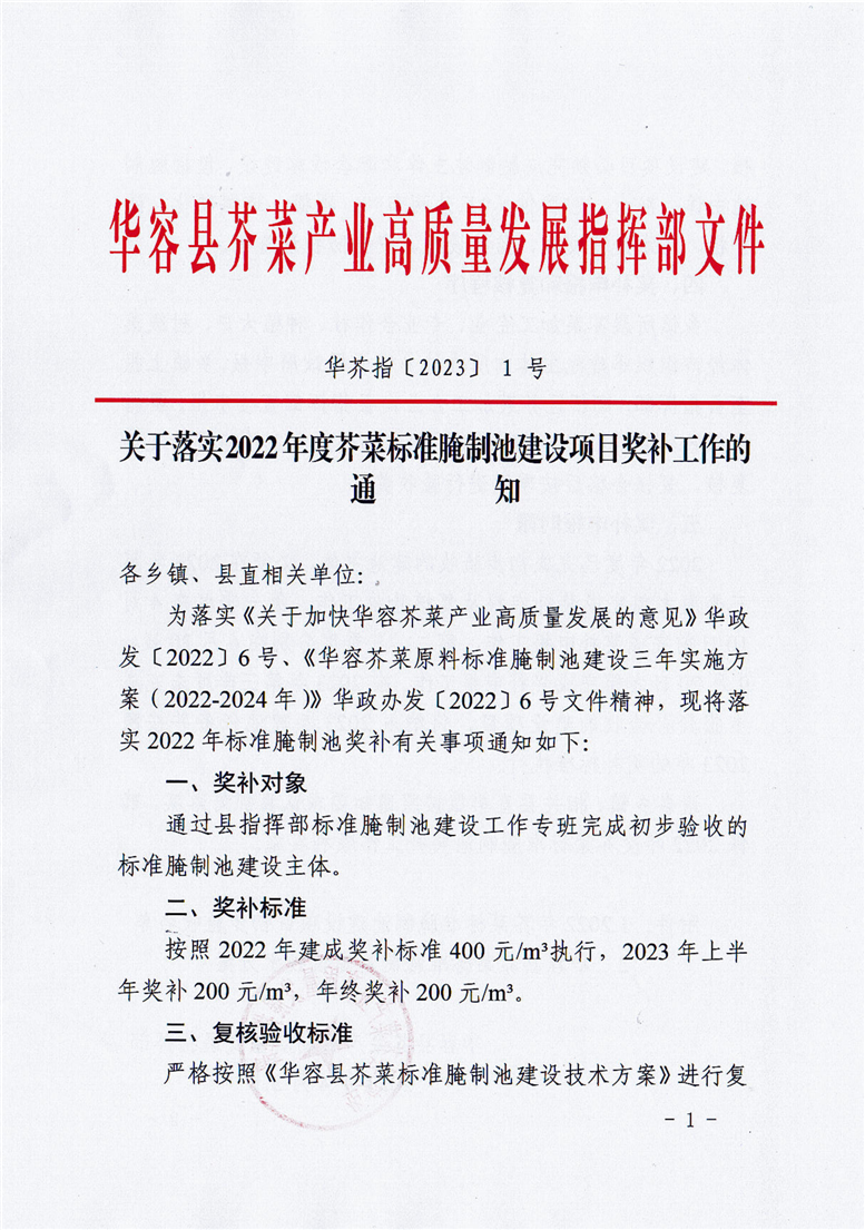 关于落实2022年芥菜标准腌制池建设项目奖补工作的通知