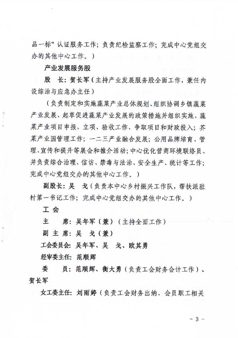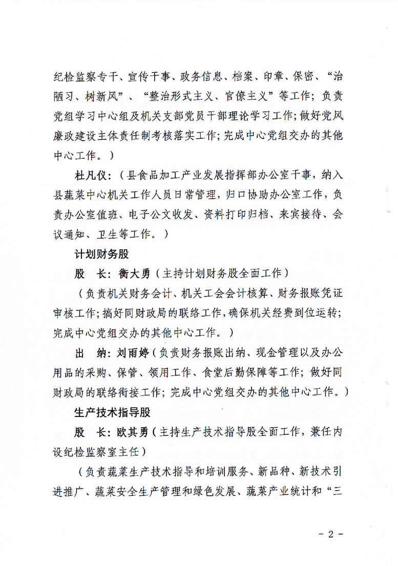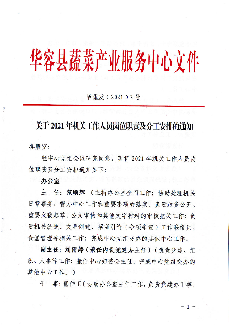 蔬菜产业服务中心2021年机关工作人员岗位职责及分工安排