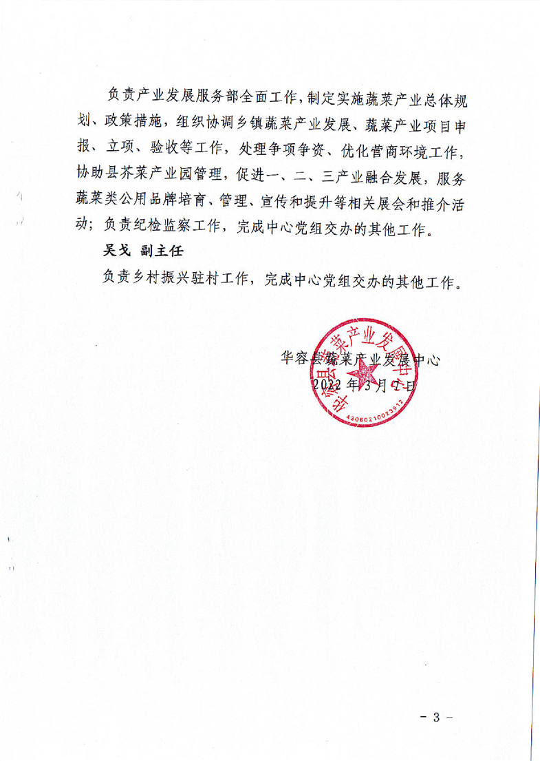 华容县蔬菜产业发展中心 关于2022年机关工作人员岗位职责及分工安排的通知
