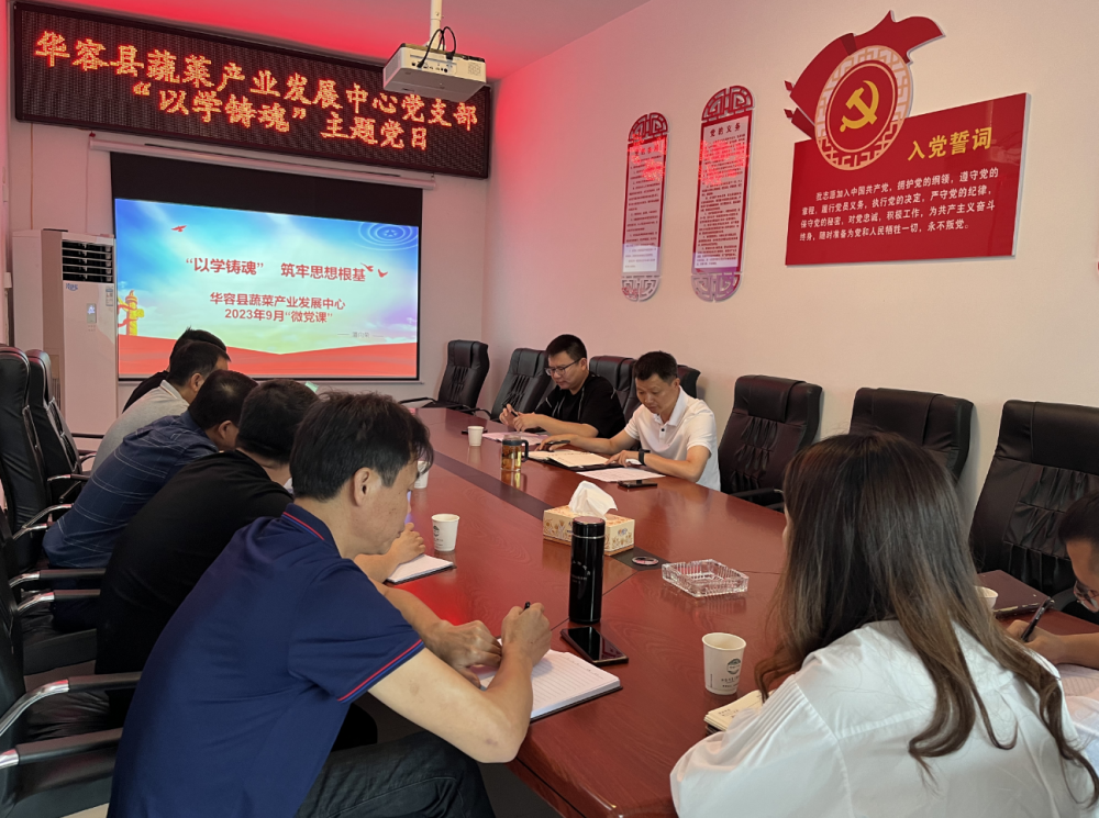 2023月9月22日,华容县蔬菜产业发展中心党支部在中心会议室召开了“以学铸魂”党日研讨会。