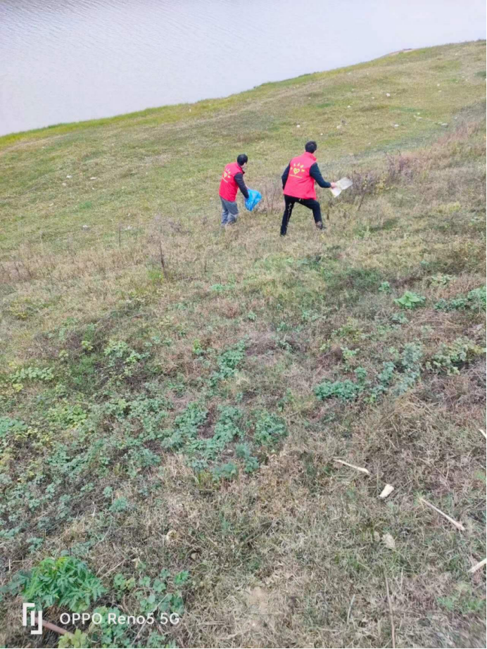 2022年11月13日,蔬菜中心组织5名志愿者前往华容河治河渡镇岸线开展“落实党的二十大精神,守护好一江碧水”净滩行动。