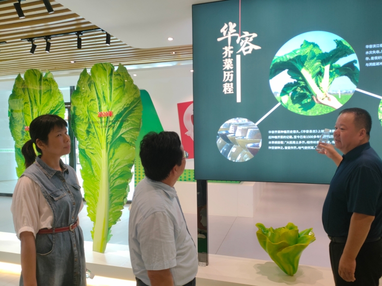 8月9日,中心副主任张昭宇陪同湖师大教授、博士生导师徐新平一行调研华容芥菜品牌建设。