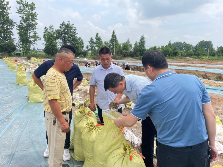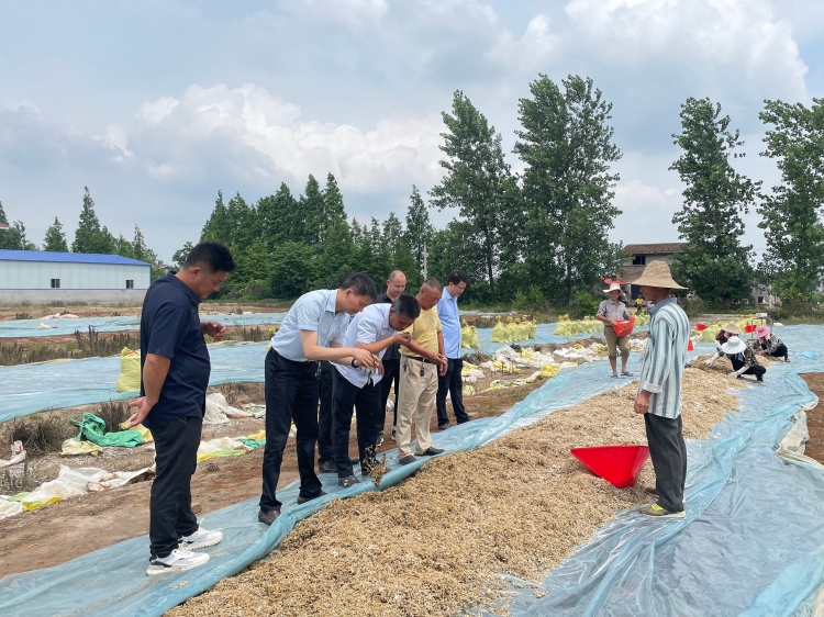 6月,蔬菜中心党组书记王世锋前往“两结对三互比一联创”联点村梅田湖镇新垱村调研,重点查看了当地合作社食品加工情况。
