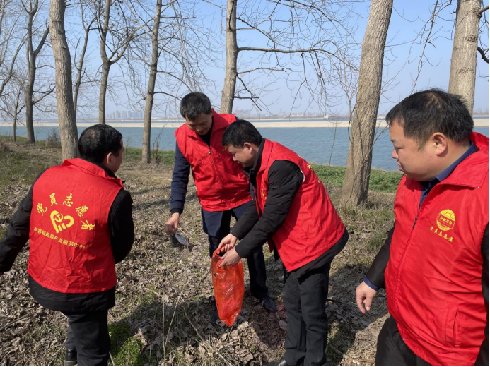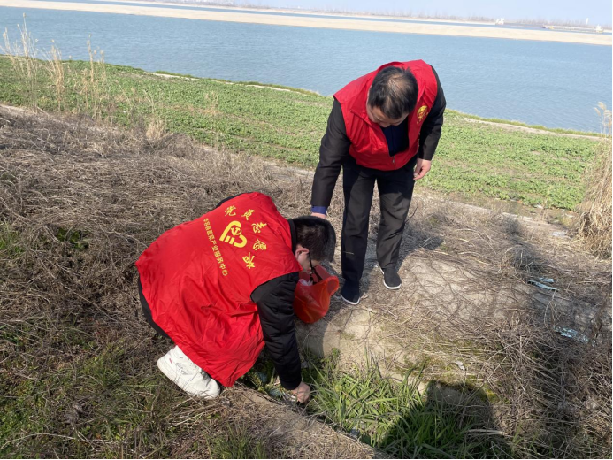 下午,支部全体党员前往东山镇江洲堤上清理堤岸环境,进行“巴陵先锋”“长工精神