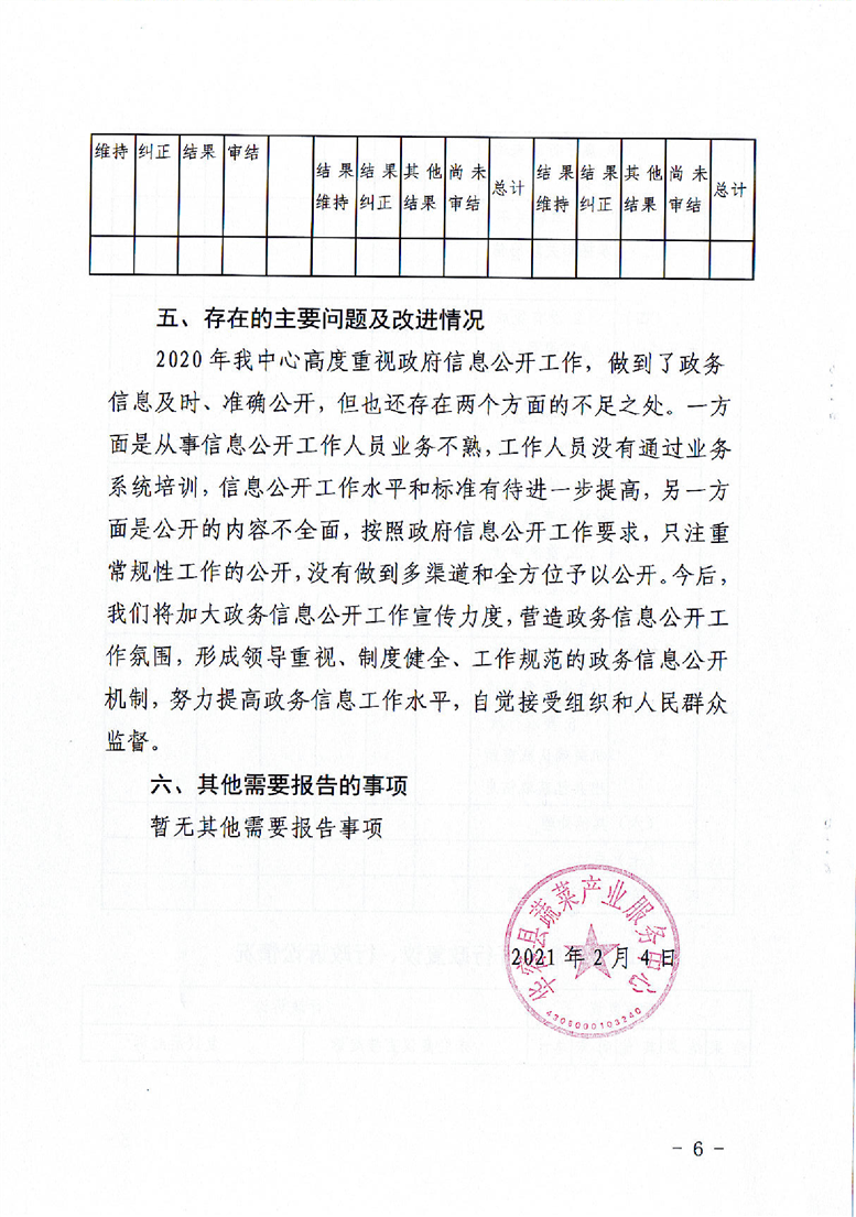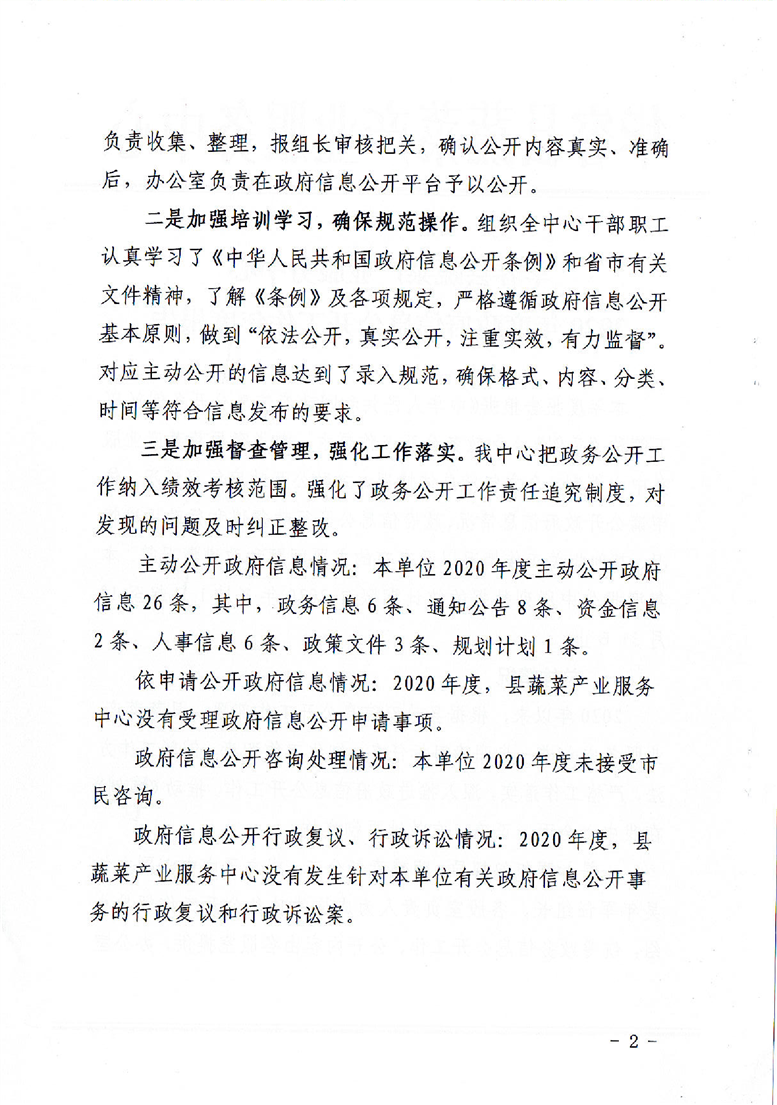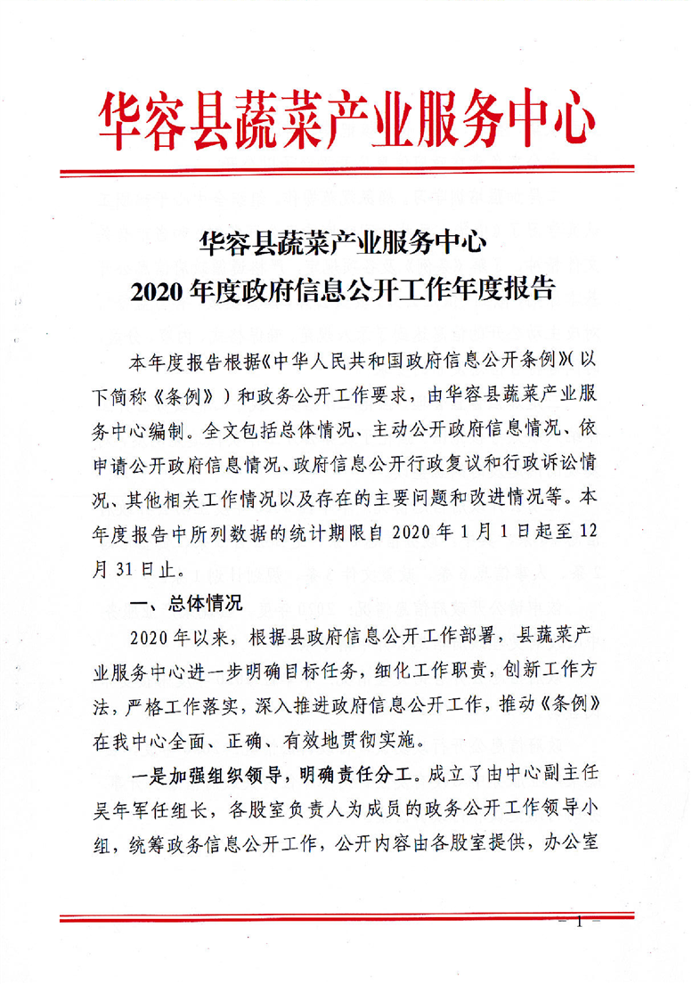 华容县蔬菜产业服务中心2020年政府信息公开工作年度报告