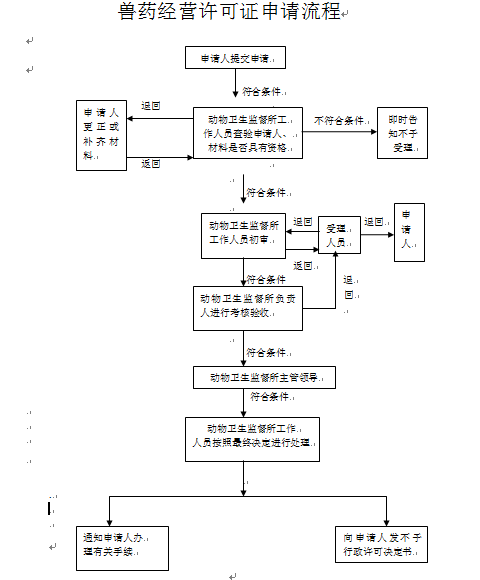 | 受理条件 | 1、有与所经营的兽药相适应的兽药技术人员。 2、有与所经营的兽药相适应的营业场所、设备、仓库设施。 3、有兽药经营质量管理规范的其他条件。 |