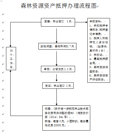 | 申请材料 | 1、林权抵押申请报告、抵押登记申请表;(份数:1份;获取方式:窗口提供空白文本和示范文本或http://lyj.huarong.gov.cn下载电子档,申请者按示范文本填写) 2、抵押人和抵押权人身份证明;(验原件,复印件1份) 3、林权证; 4、最高抵押额合同; 5、森林资源调查报告; 6、森林资源资产评估报告。 |