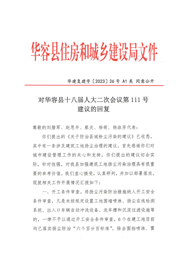 对华容县十八届人大二次会议第111号建议的答复(住建局)