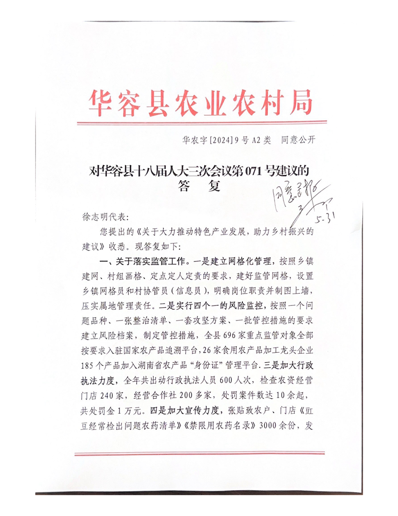 对华容县十八届人大三次会议第71号建议的答复