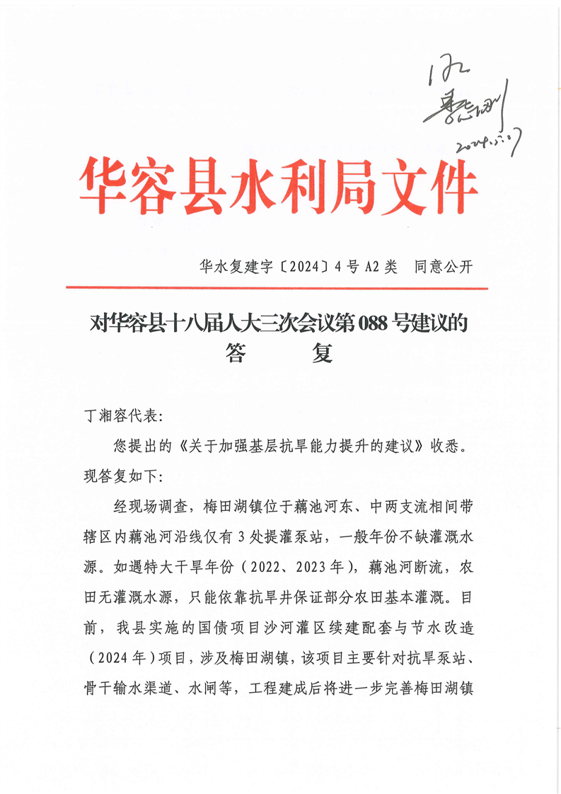 对华容县十八届人大三次会议第88号建议的答复