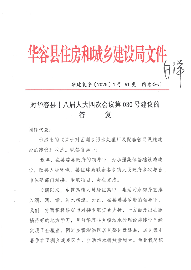 对华容县十八届人大四次会议第030号建议的答复
