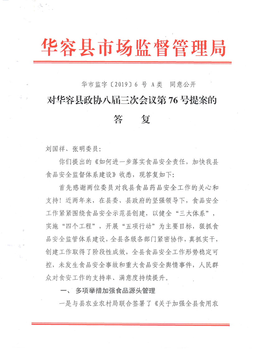 对华容县政协八届三次会议第76号提案的回复